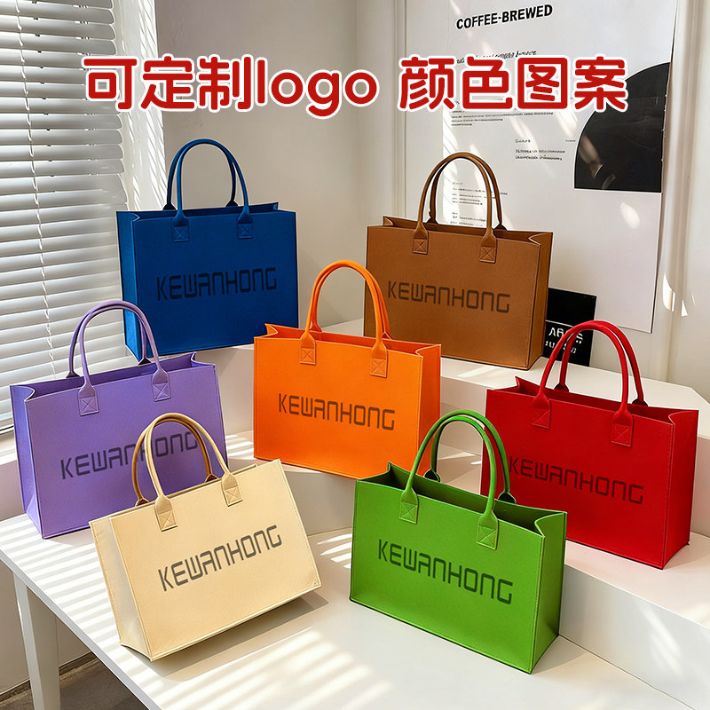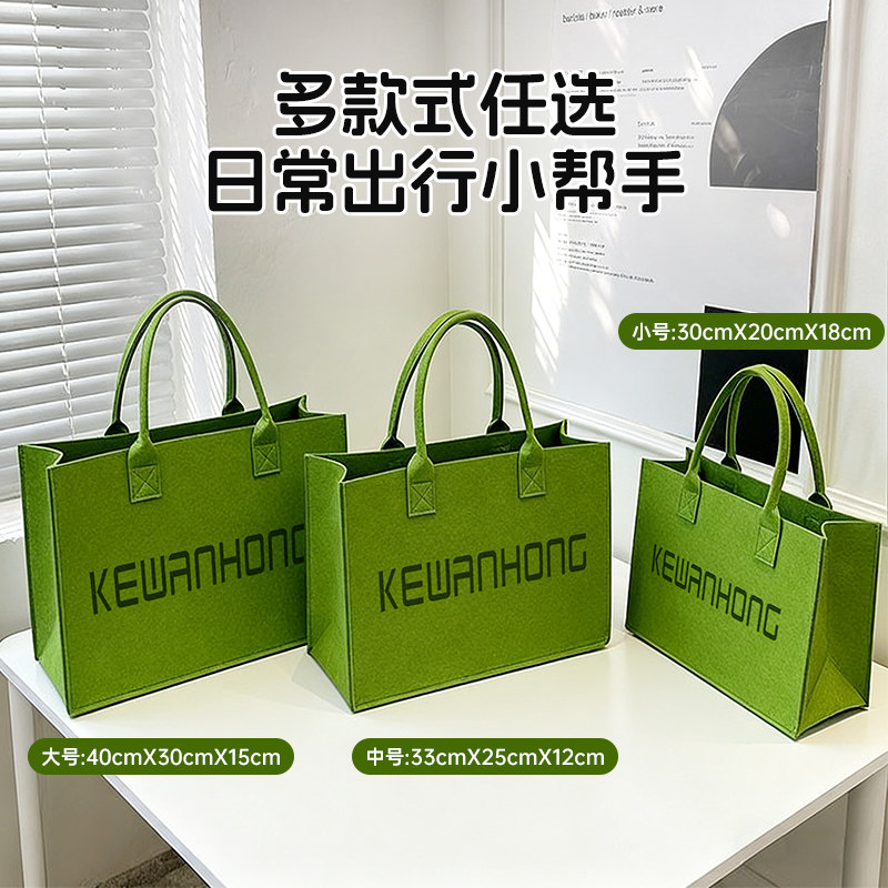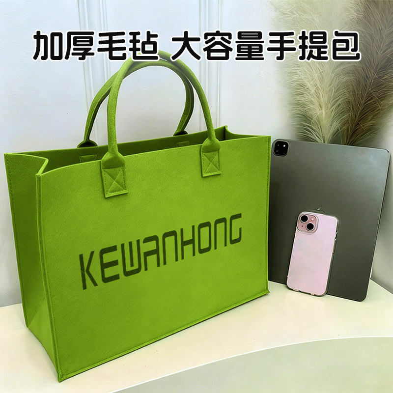 新款毛毡包大容量购物环保袋手提袋帆布包女时尚立体旅行高颜值