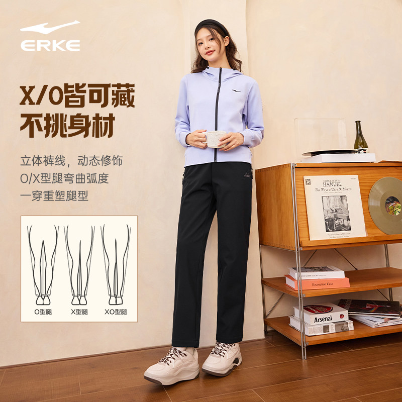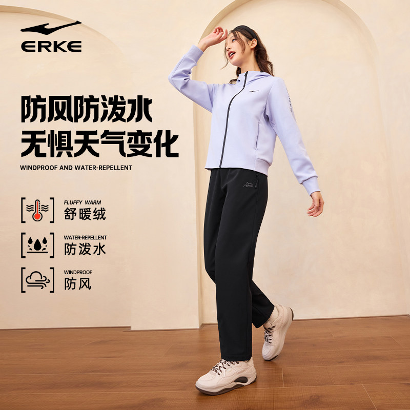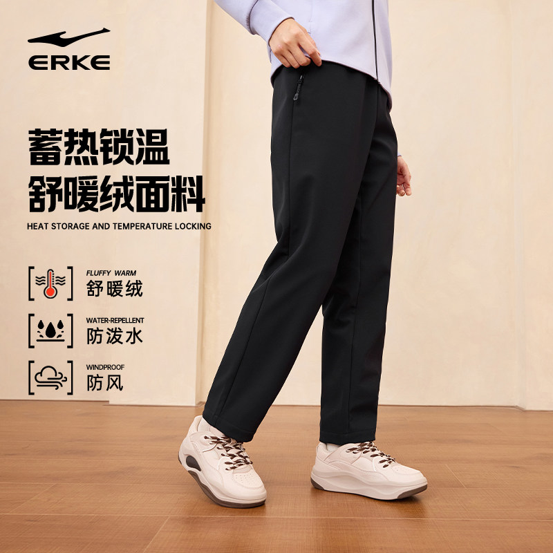 鸿星尔克加绒运动裤女冬季新款女士加厚裤子宽松直筒长裤休闲女裤