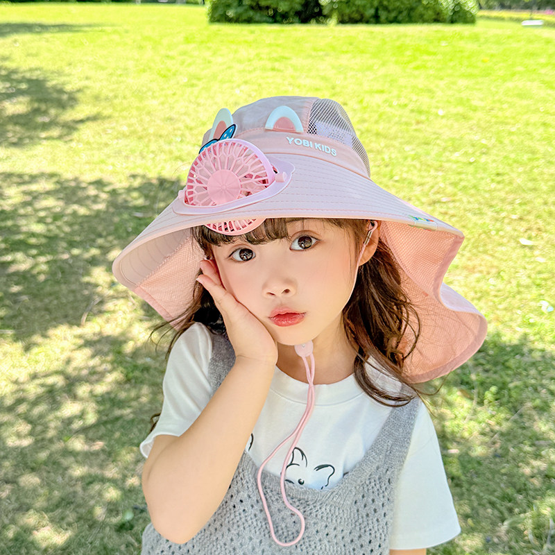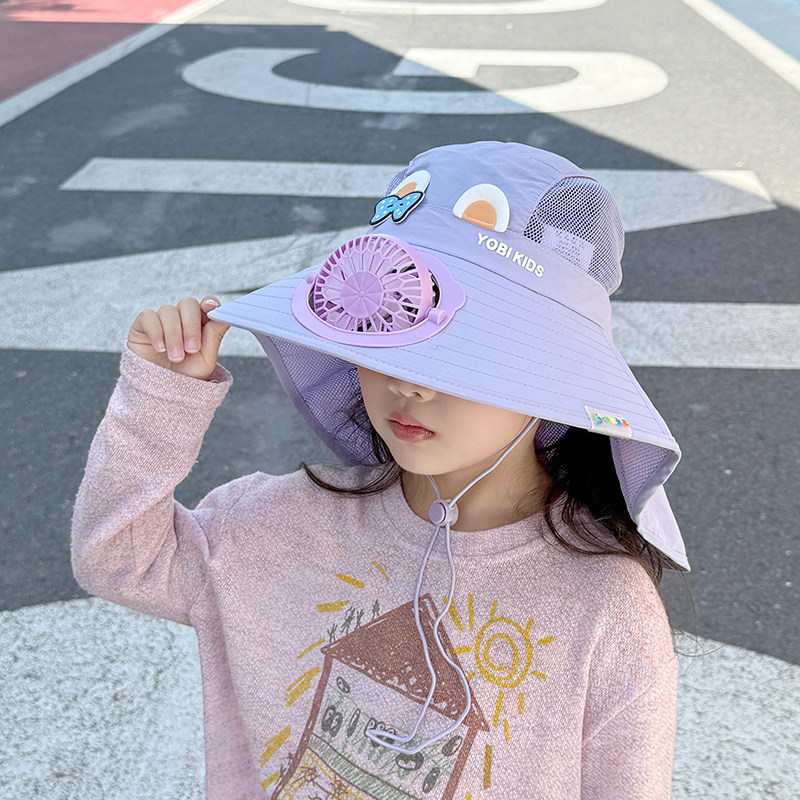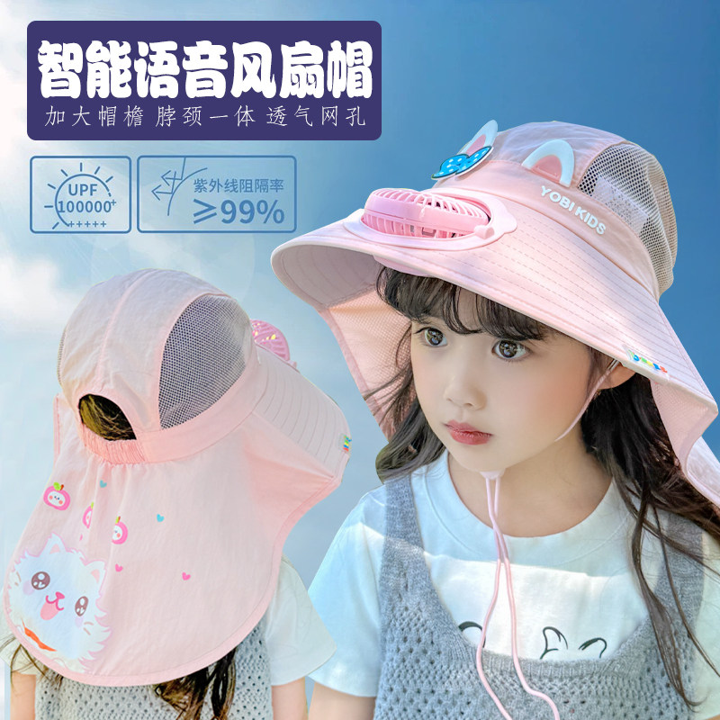 儿童声控风扇帽子夏季卡通防晒遮阳帽男童女孩防紫外线网眼披肩帽