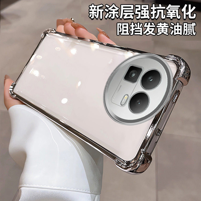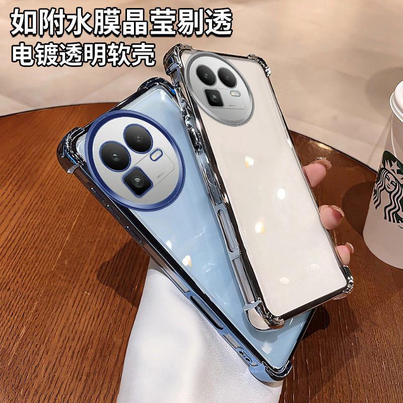 真我GT8手机壳新款四角气囊硅胶防摔时尚镜头全包软壳适用真我GT8pro高级感奢华强抗氧化简约电镀透明手机壳