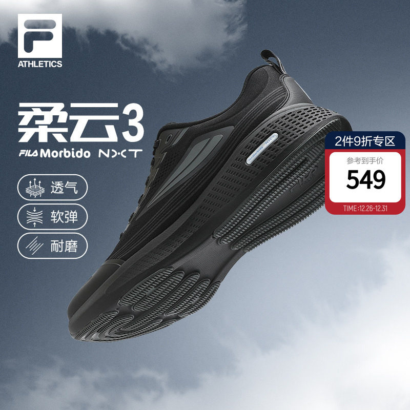 柔云3|黄景瑜同款FILA斐乐跑步鞋男鞋2025新款网面黑色运动鞋