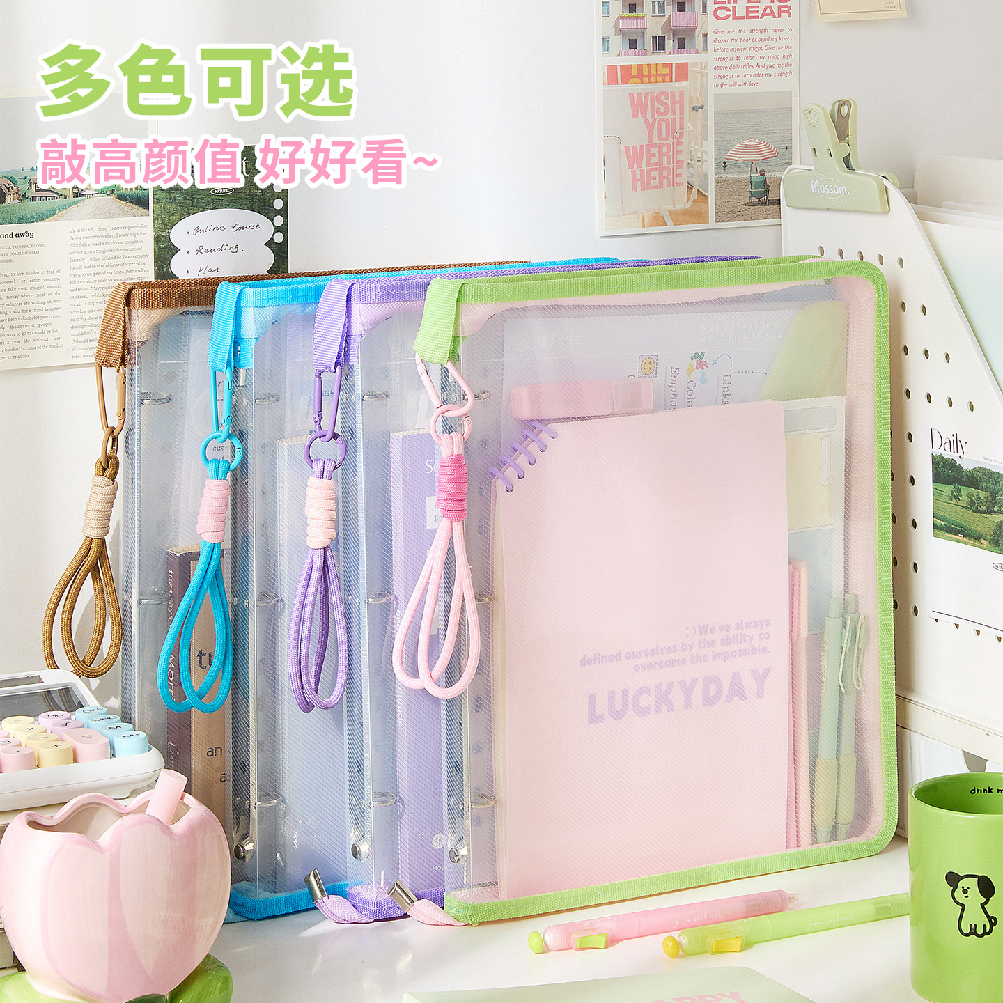 三年二班 拉链文件袋透明大开口A4活页文件包手提袋学生初中生A5高颜值收纳袋早八必备文具试卷包学科科目袋
