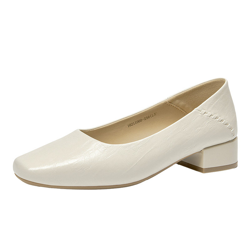 米霏~真皮奶奶鞋女粗跟2026春款法式单鞋中跟浅口晚晚鞋大码女鞋