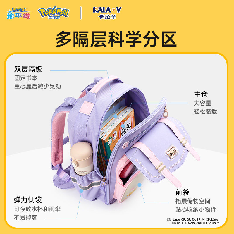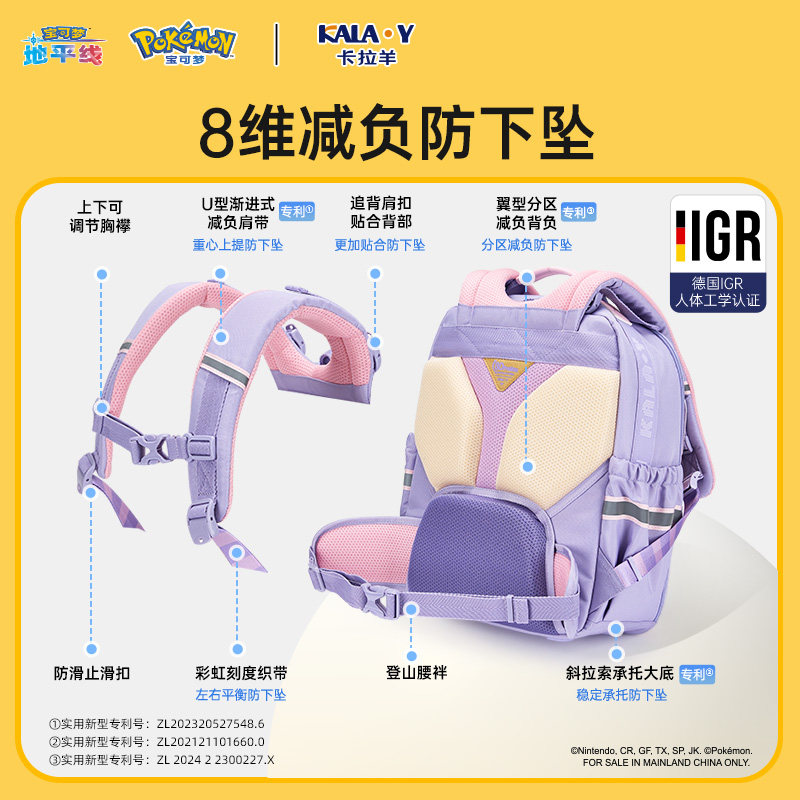 【宝可梦联名款】卡拉羊小学生书包8维防下坠双肩背包云朵ProMax