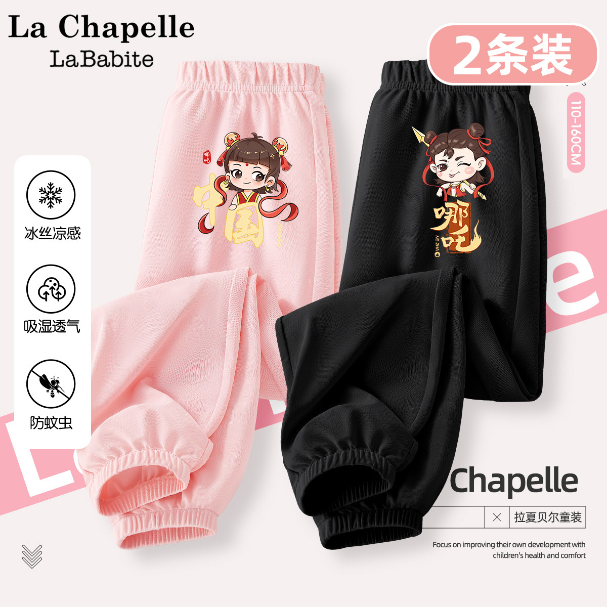 拉夏贝尔联名女童夏季冰丝防蚊裤2025新款薄款哪咤裤子儿童运动裤