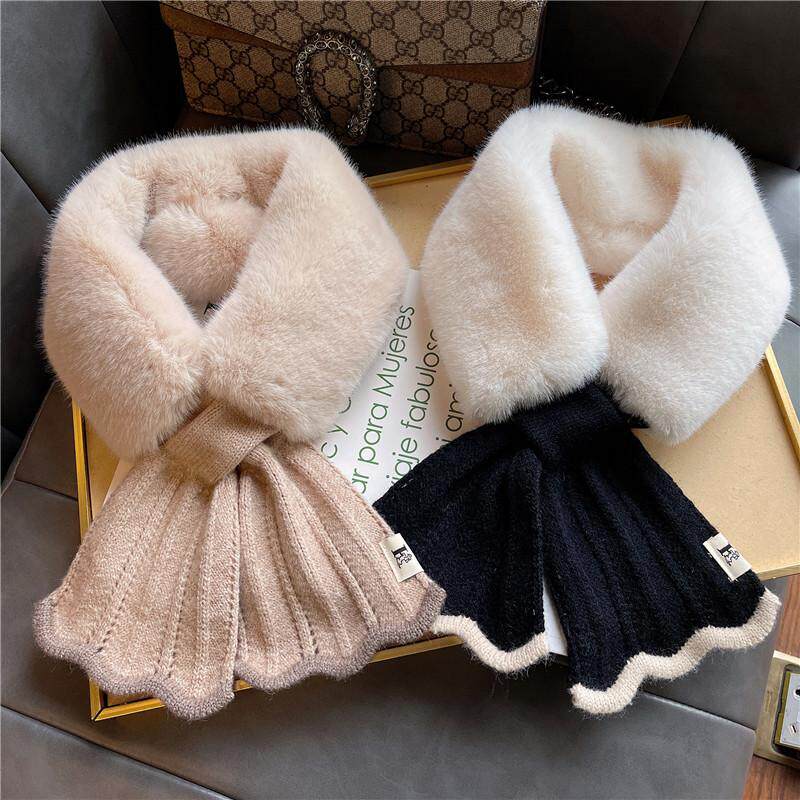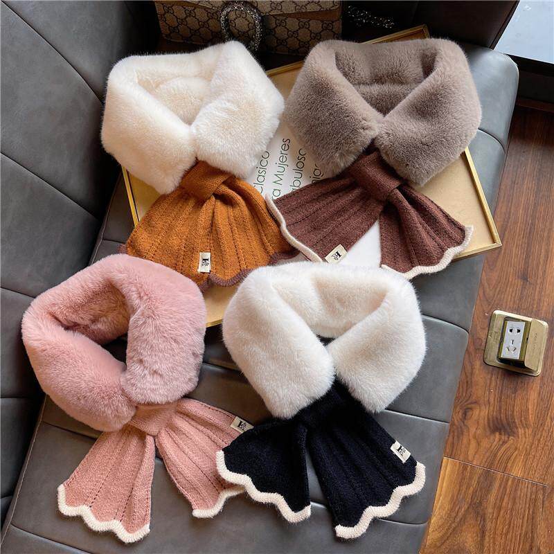 2025新款加厚秋冬交叉毛围脖领子毛绒新款毛韩版针织保暖围巾女