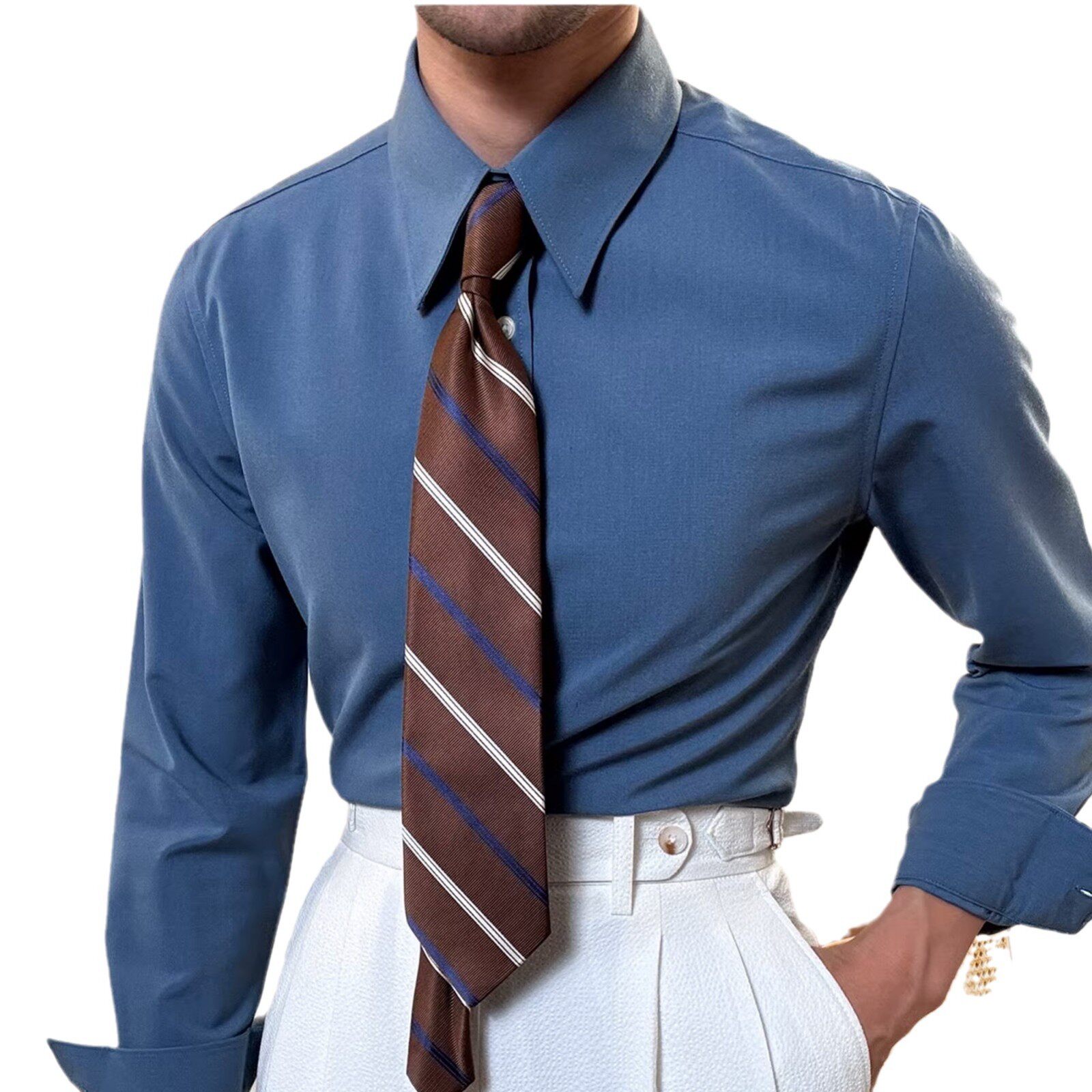 法式高级感帝国领衬衫长袖衬衣男免烫修身衬衣商务正装欧美大尖领