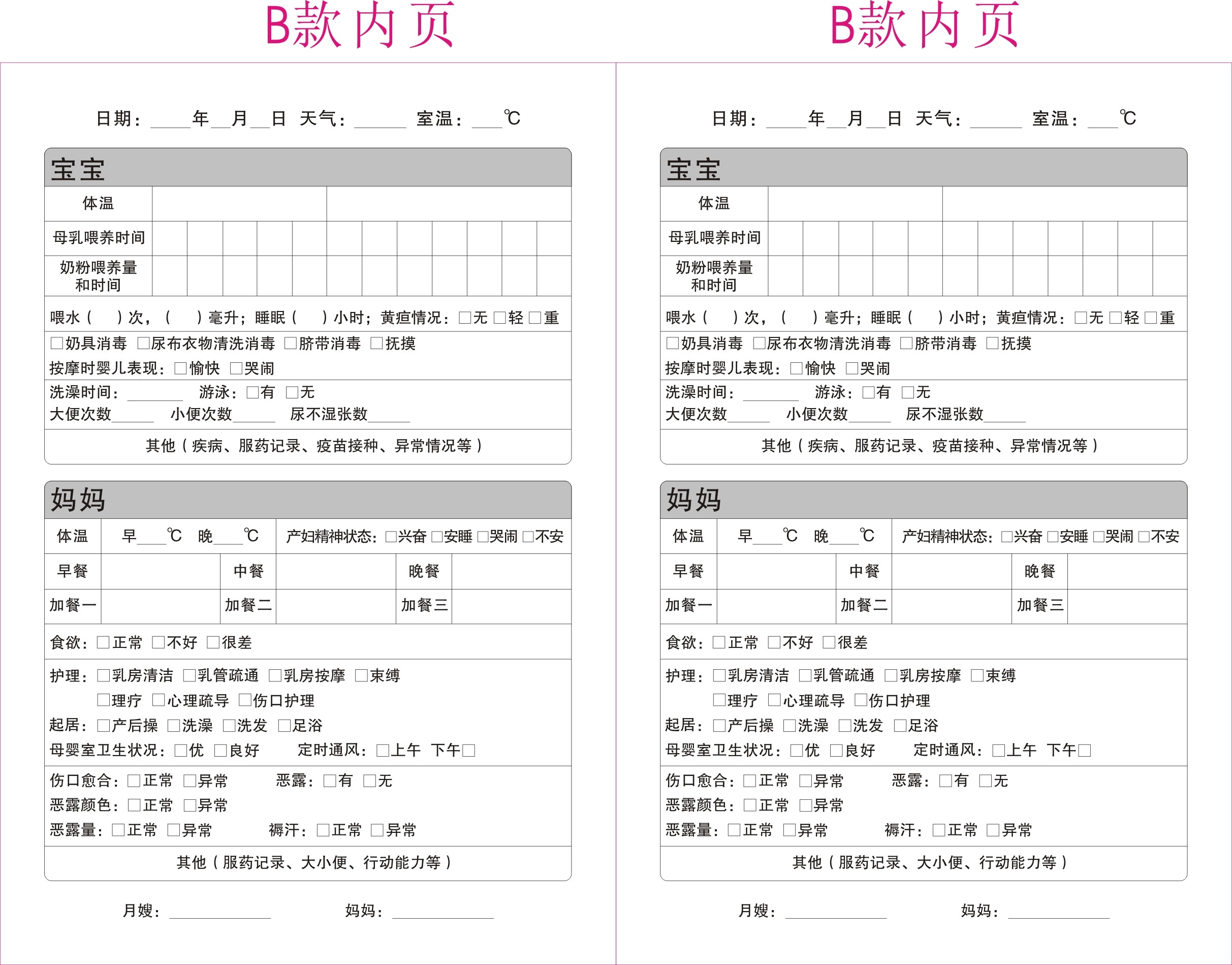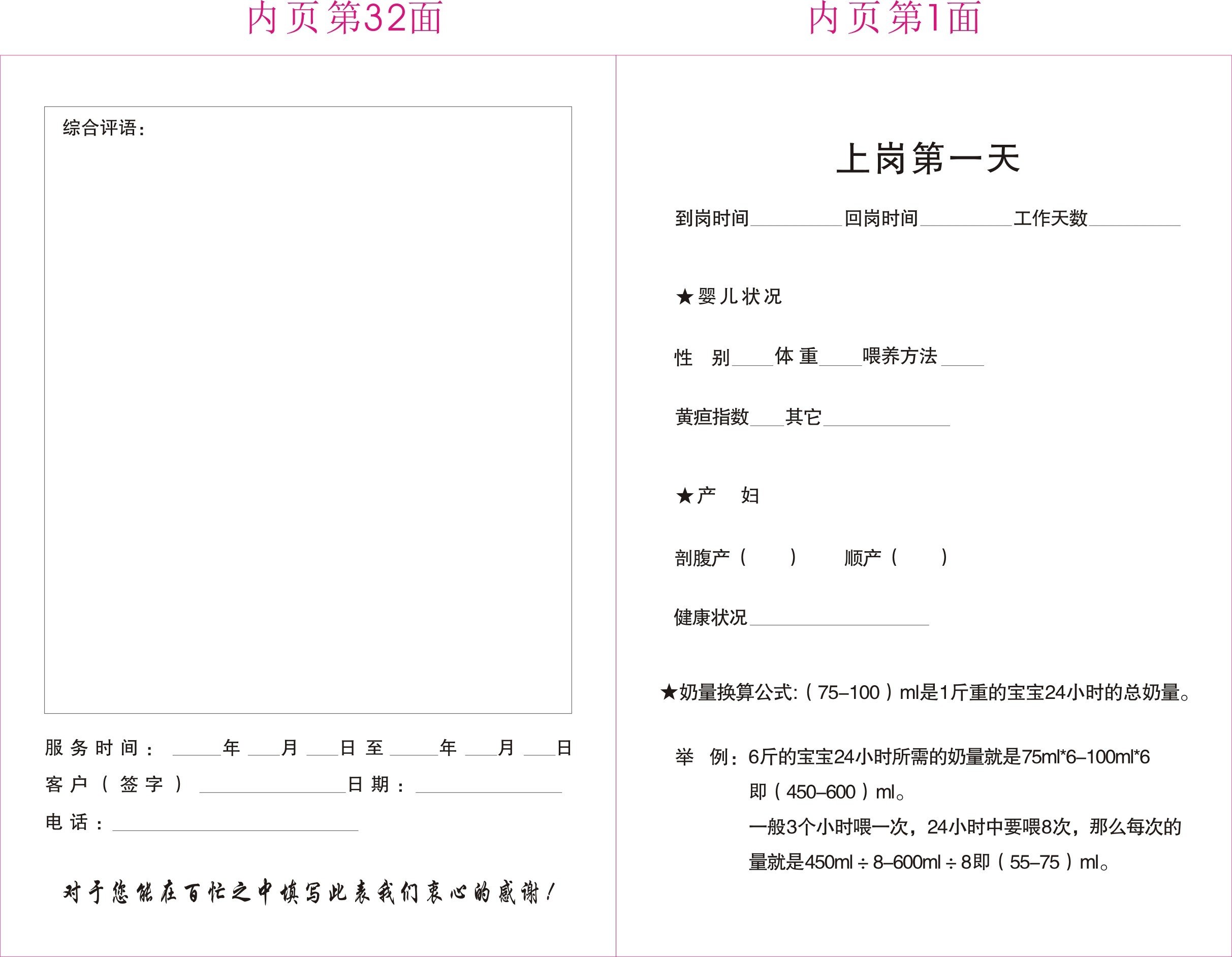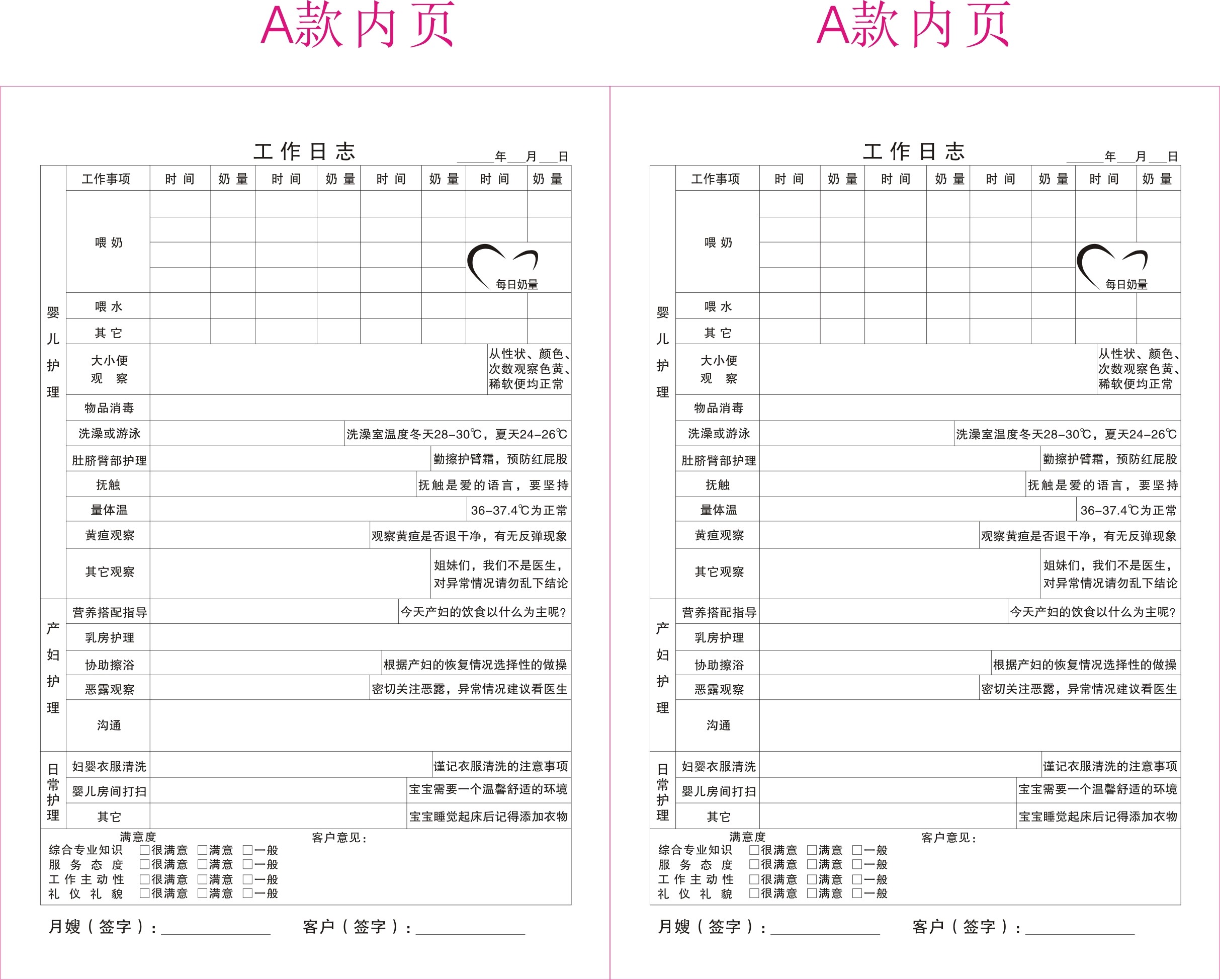 月嫂工作日志母婴护理服务幼儿月嫂上户记录本培训手册日记本档案