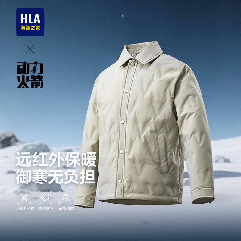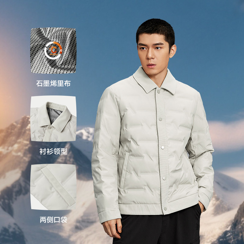 HLA海澜之家山不在高轻薄排骨羽绒服25冬新石墨烯衬衫领外套男士