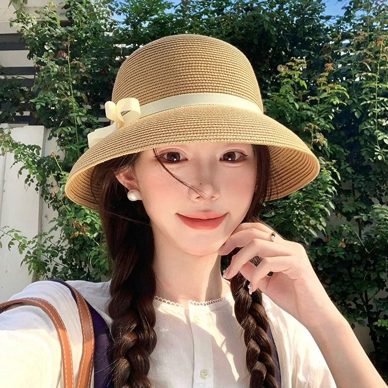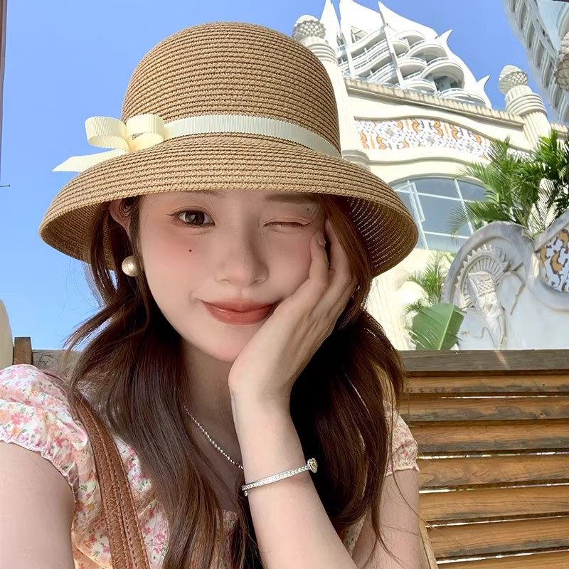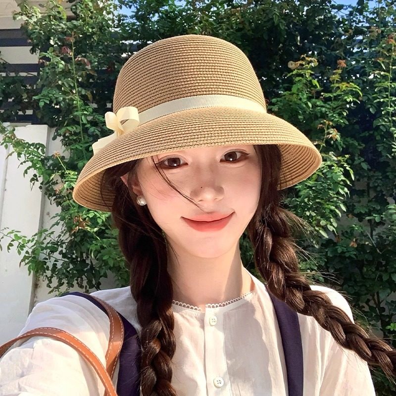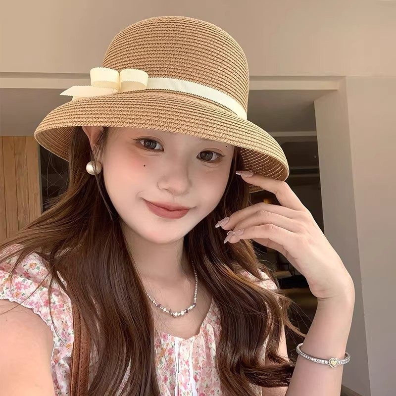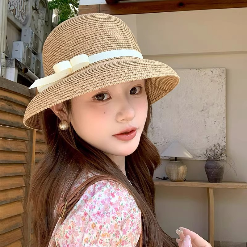 高品质版赫本风草帽子女2025新款夏季遮阳防晒渔夫帽盆帽礼帽百搭