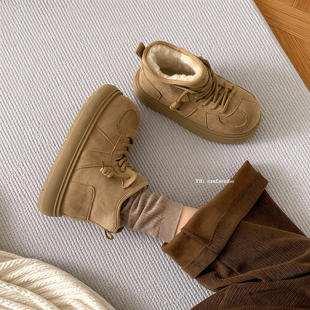 东北防滑厚底德训雪地靴女2025新款冬季加绒加厚保暖增高棉鞋圆头