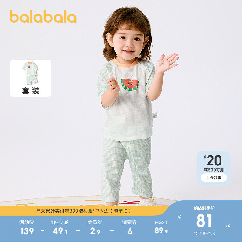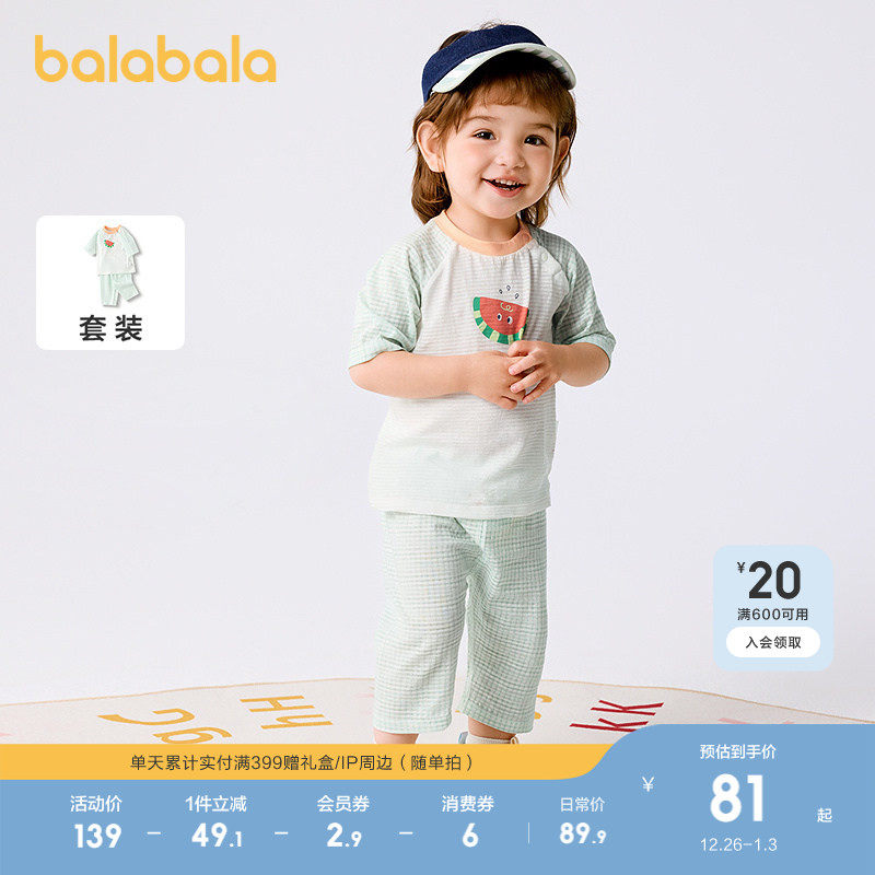 巴拉巴拉宝宝睡衣新生儿家居套装男童夏装薄款女2025新款可爱舒适