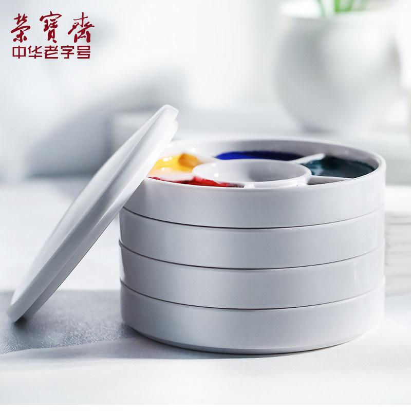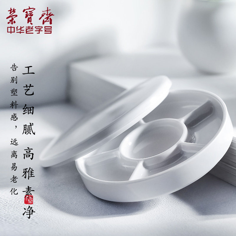 荣宝斋墨盒书法文房四宝书法国画包邮墨汁仿陶瓷墨海书法墨毛笔带盖颜料调色盘