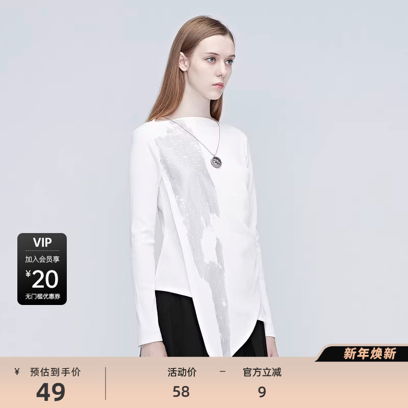 【秒杀】sdeer圣迪奥上衣甜辣女装胶印不规则长袖T恤S20380206