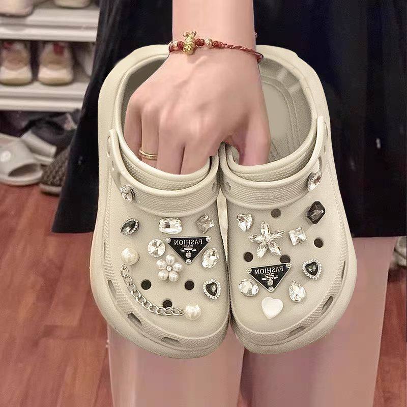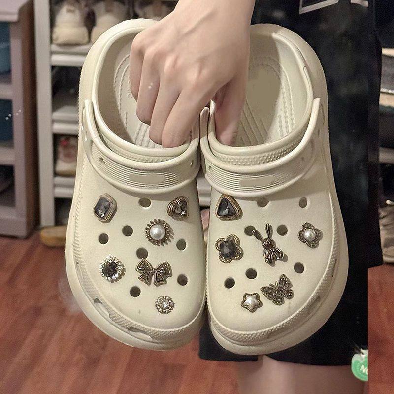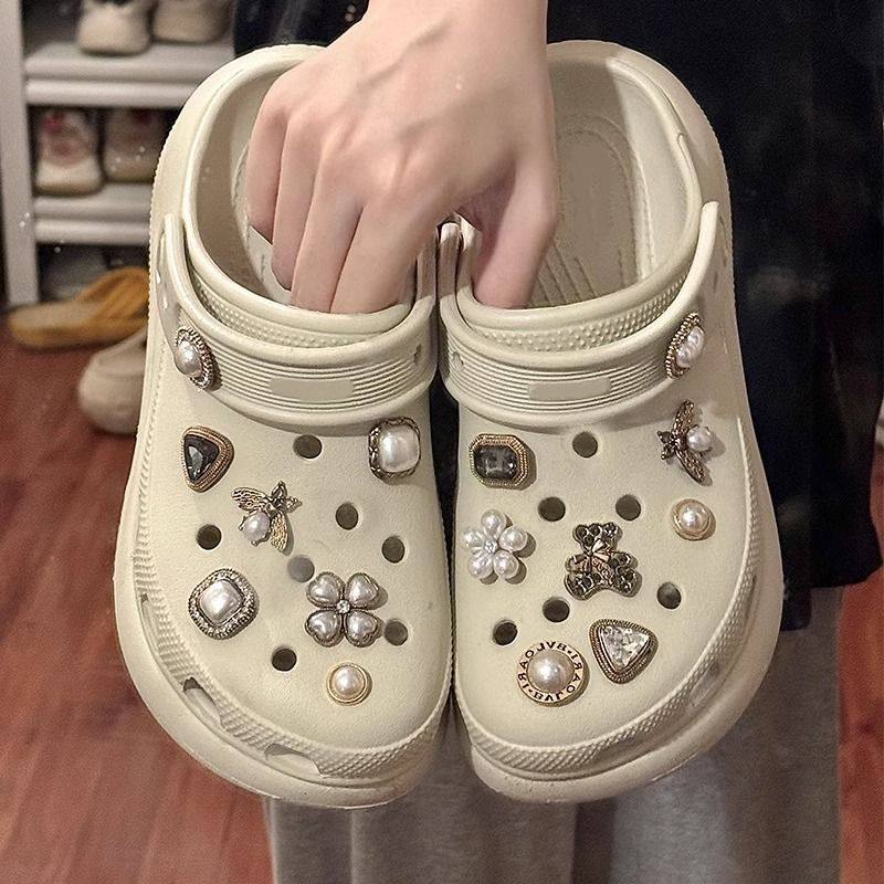 巴洛克珍珠鞋花洞洞鞋diy配件配饰链条金属熊适配装饰可拆卸鞋扣