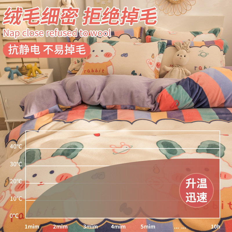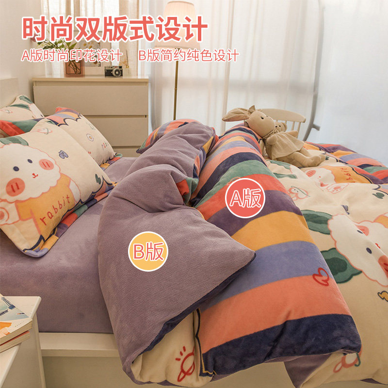 冬季加绒被套单件牛奶绒珊瑚绒宿舍单人单独毛绒被罩1.5米四件套3