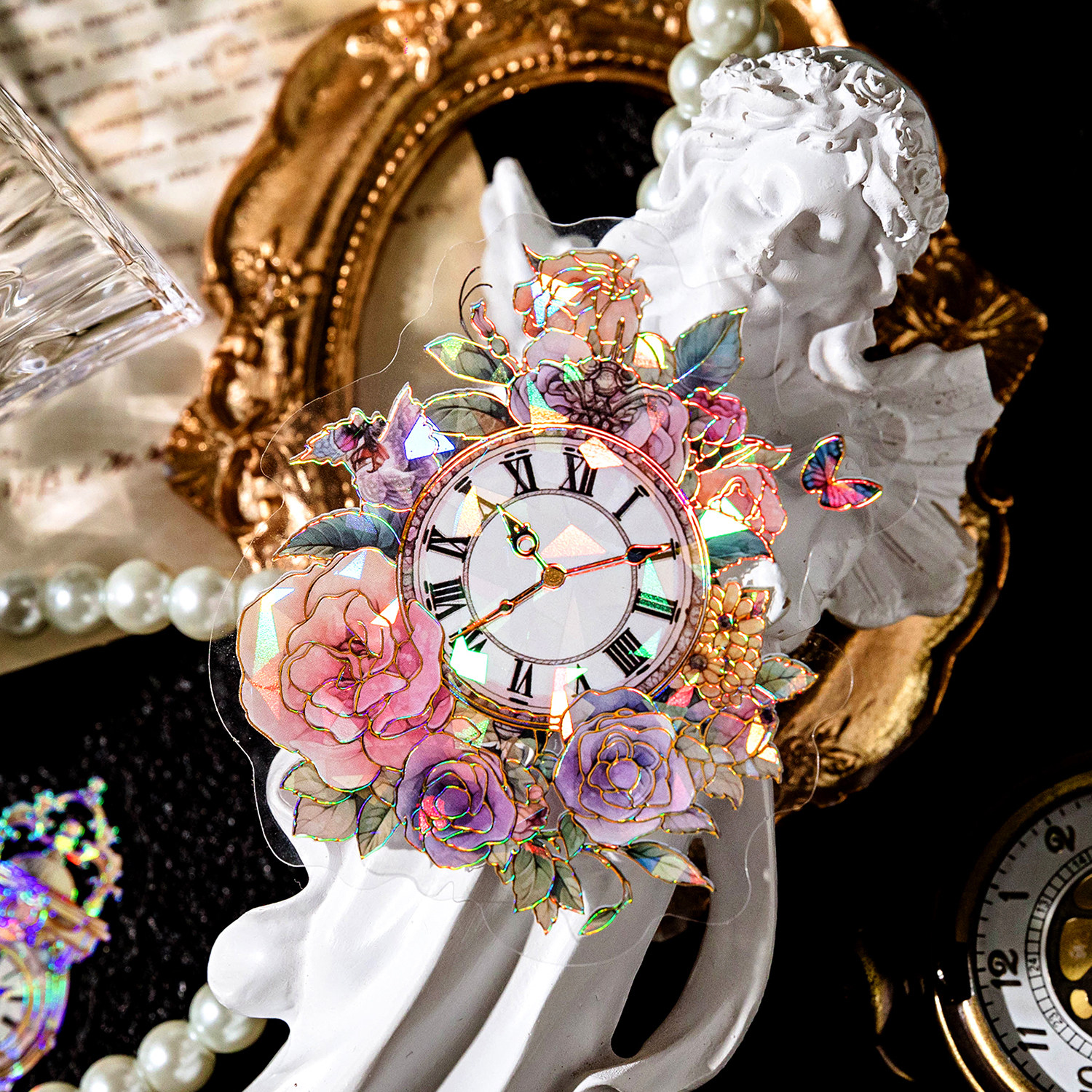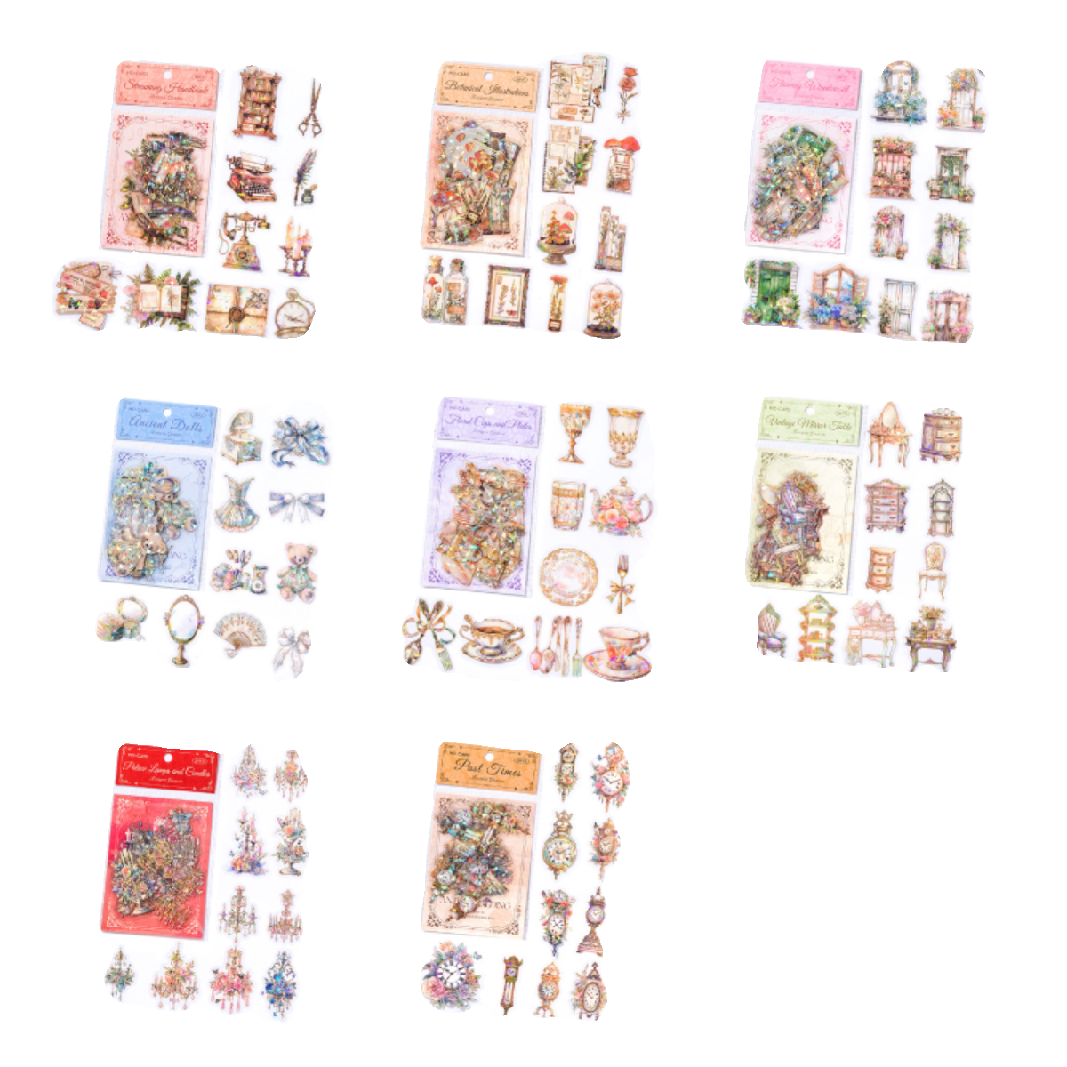 PET立体烫金复古家具时钟灯具门窗贴纸包手账DIY装饰拼贴素材贴画