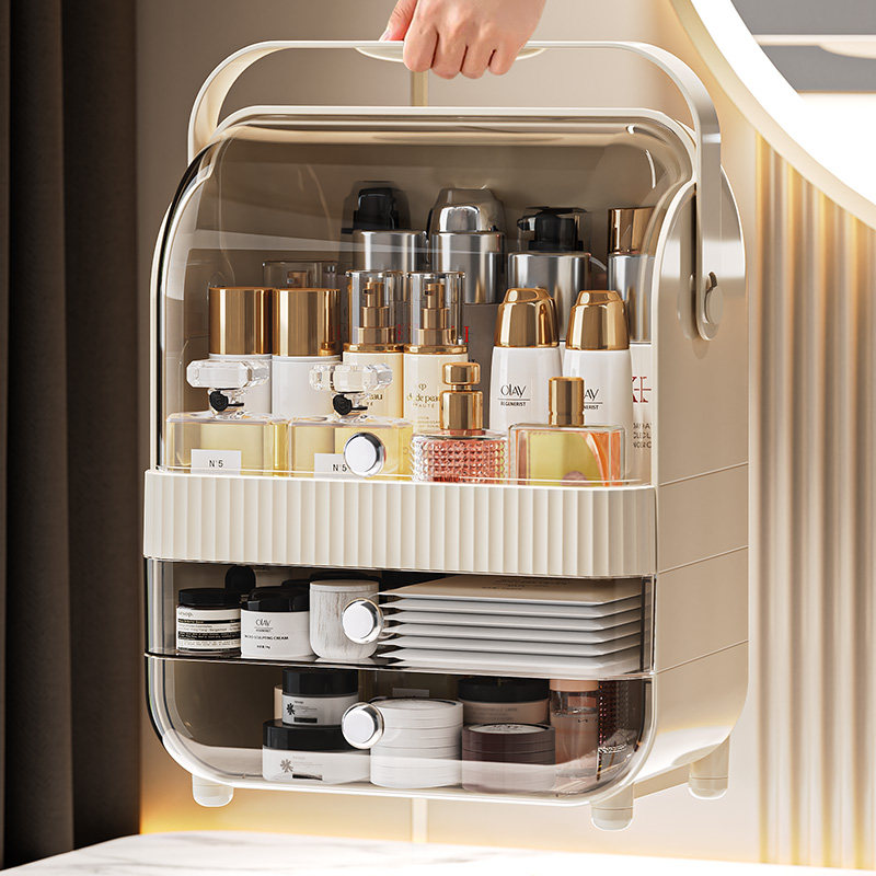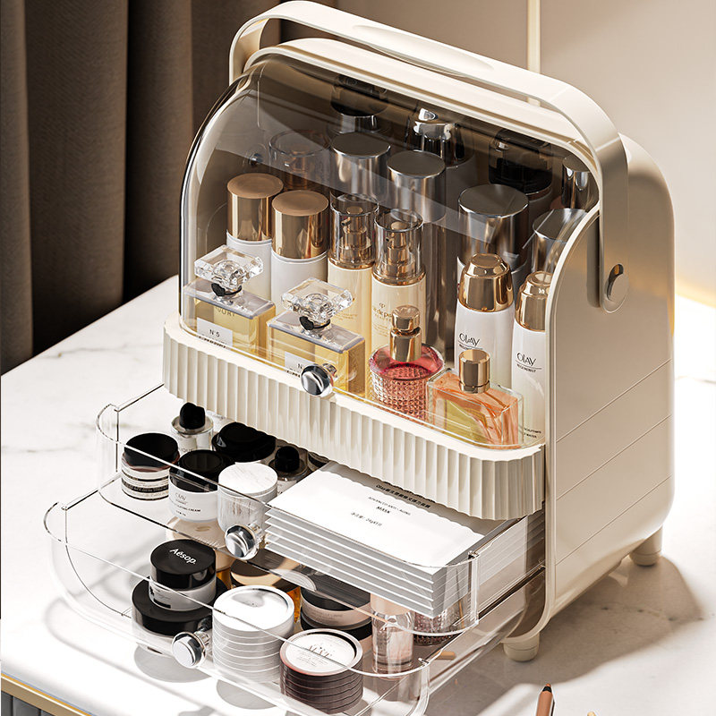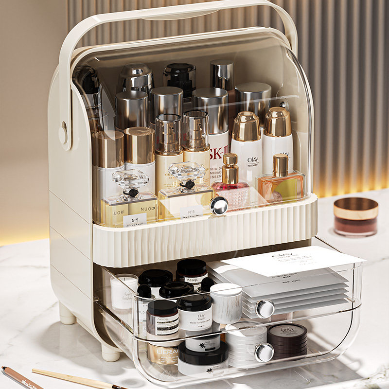 化妆品收纳盒桌面抽屉式家用面膜口红护肤品防尘大容量整理储物盒