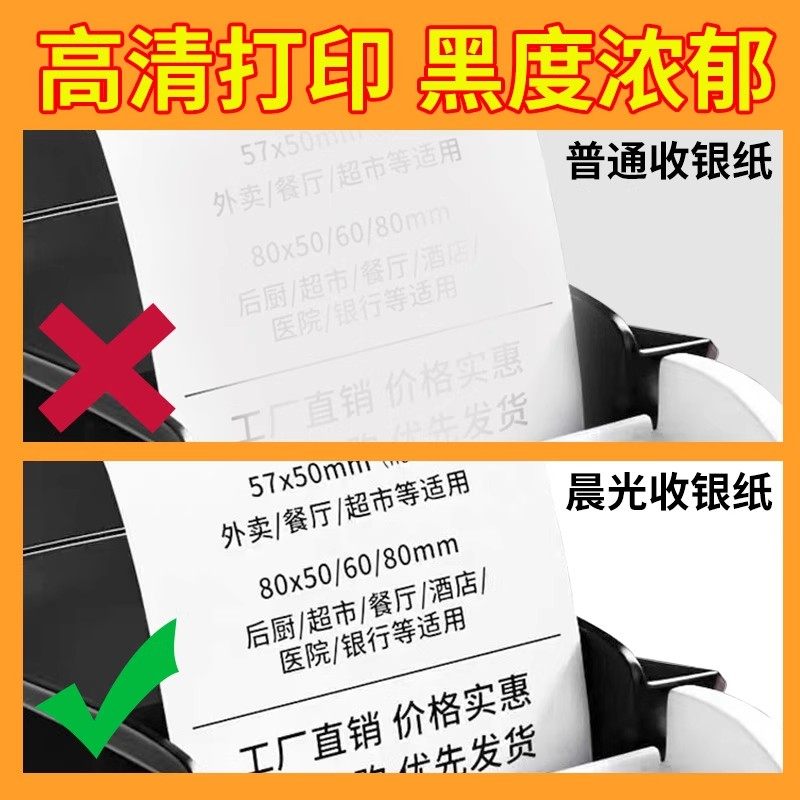 晨光热敏收银纸57x50无管芯打印纸80x80热敏纸卷纸80x60整箱收银机58mm打印纸美团外卖机餐厅超市票据小票纸