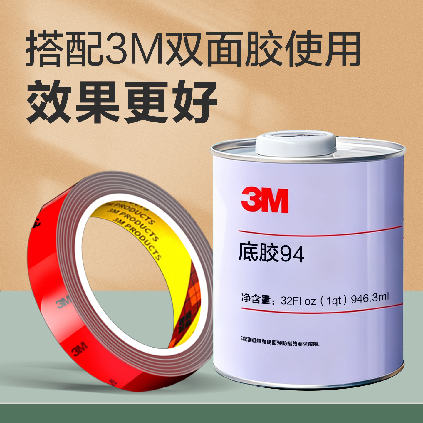 3M助粘剂车用无痕强力双面胶助黏剂3m94底涂剂4298uv高粘度汽车改色膜中网尾标快速固定胶带增粘胶水94底胶