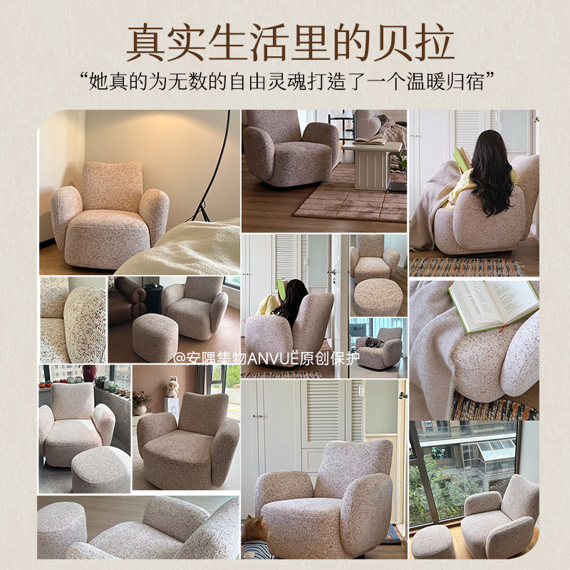 安隅集物贝拉沙发奶油风粉色公主布艺小户型单人懒人可旋转沙发椅