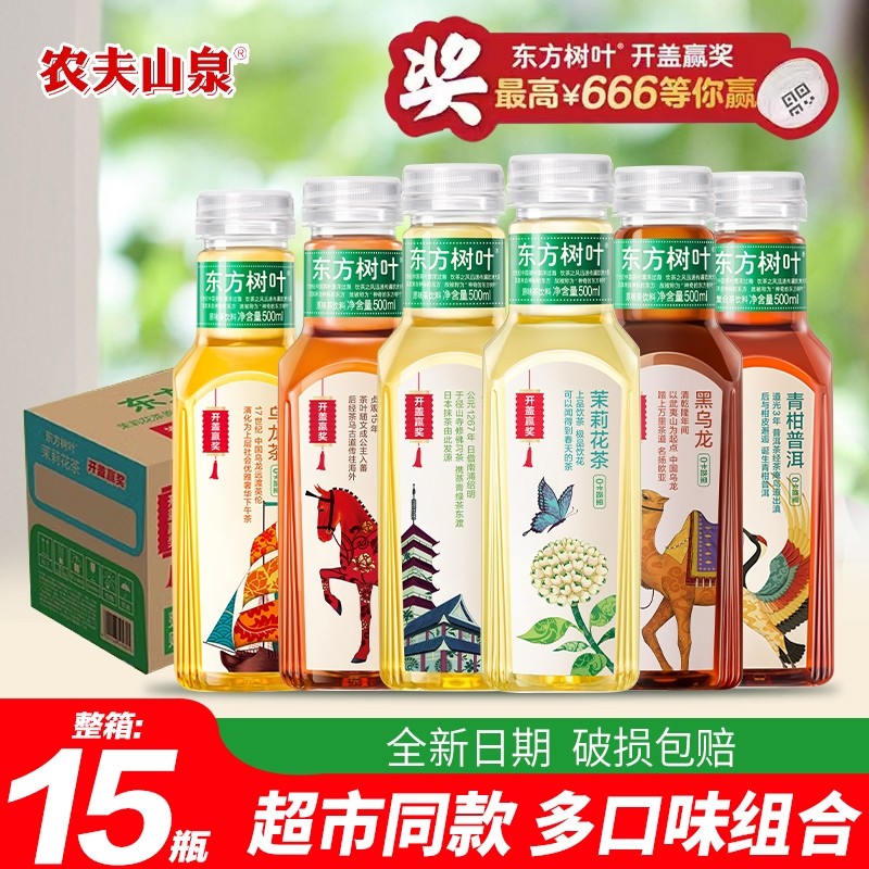 农夫山泉东方树叶500ml*15瓶整箱乌龙茶红青柑普洱茶茉莉花茶饮料
