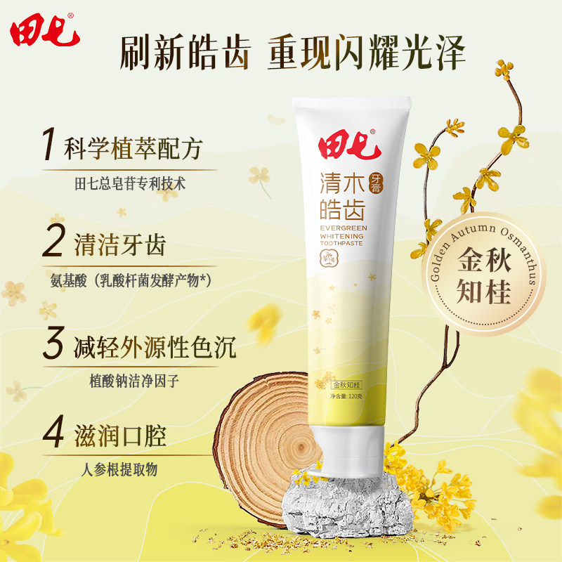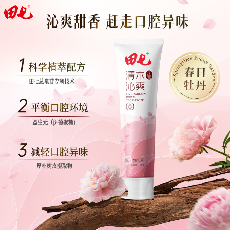 田七清木牙膏家庭组合装清新口气护龈修护抗糖净味焕白防蛀去口臭