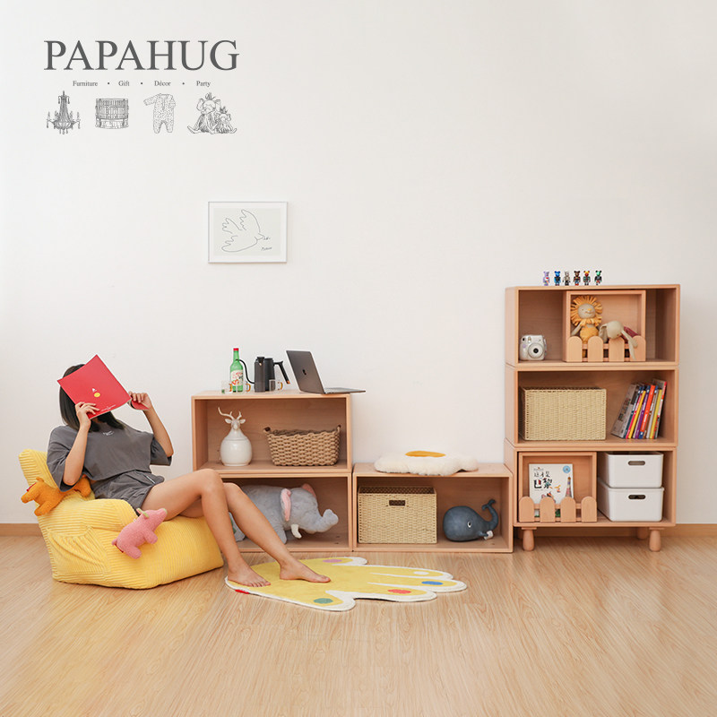 PAPAHUG 原创设计全实木书柜组合格子书橱玩具储物收纳格柜架