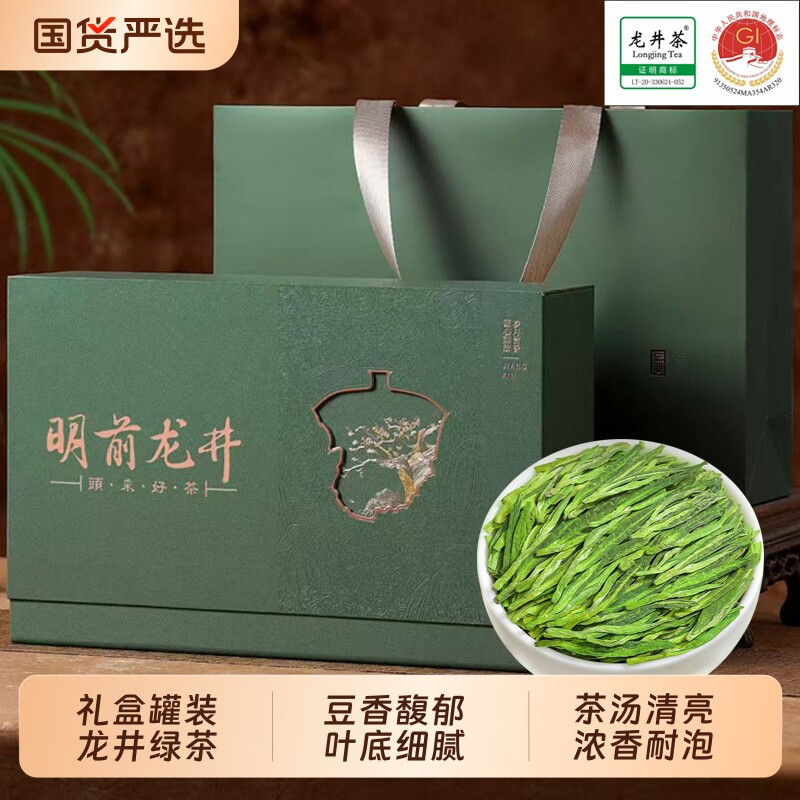 西湖工夫杭州特产明前龙井绿茶叶礼盒装送长辈生日礼物过年走亲戚