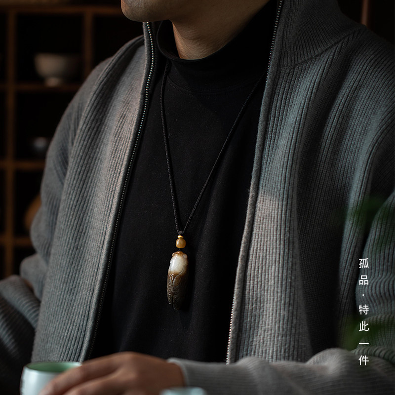 孤品【和田玉·一鸣惊人】玉石项坠毛衣链项链男女士吊坠一物一证