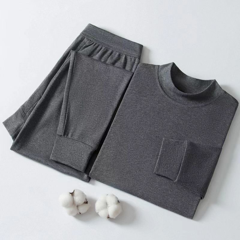 中高领保暖内衣男士加绒加厚套装大码德暖绒秋衣秋裤打底棉毛衫冬