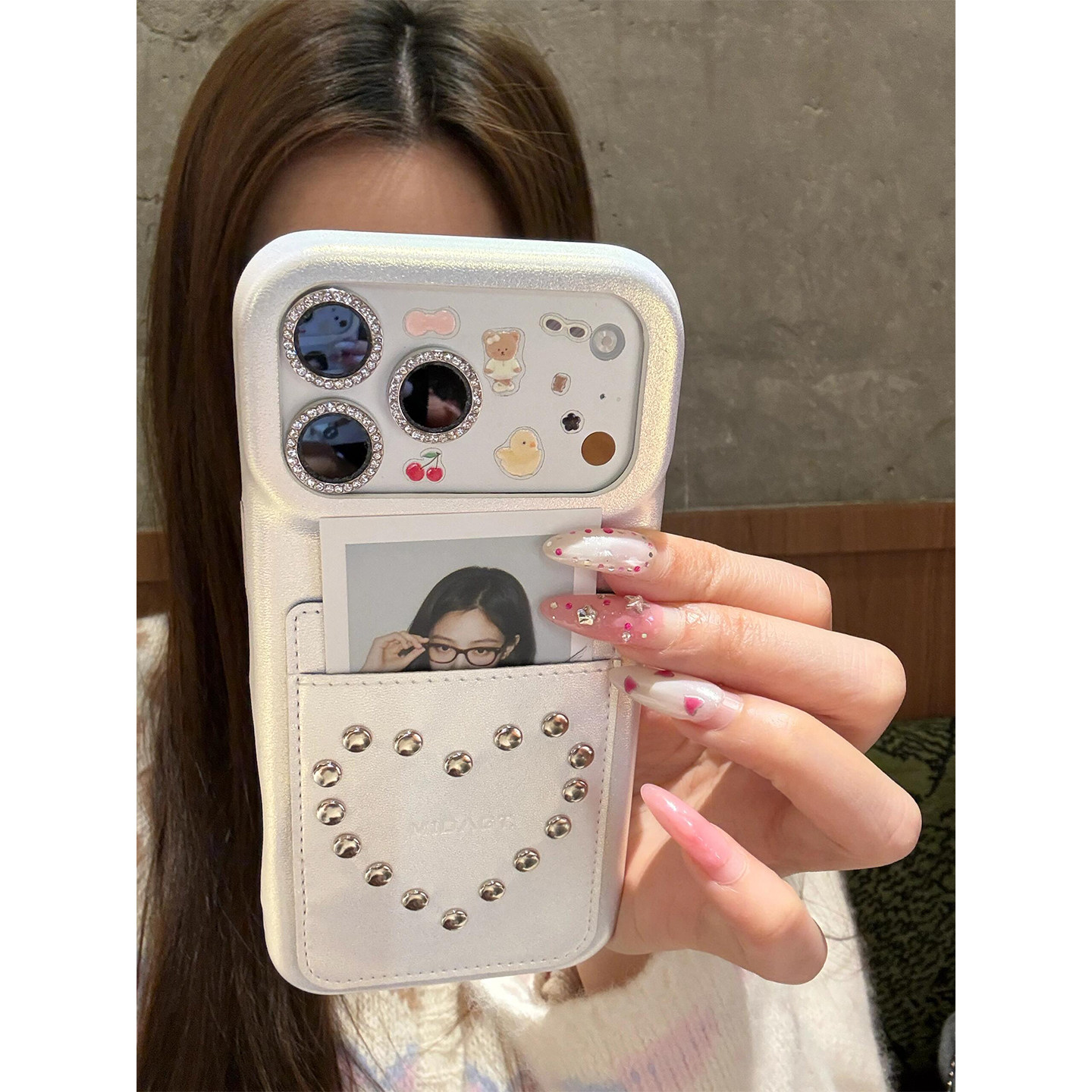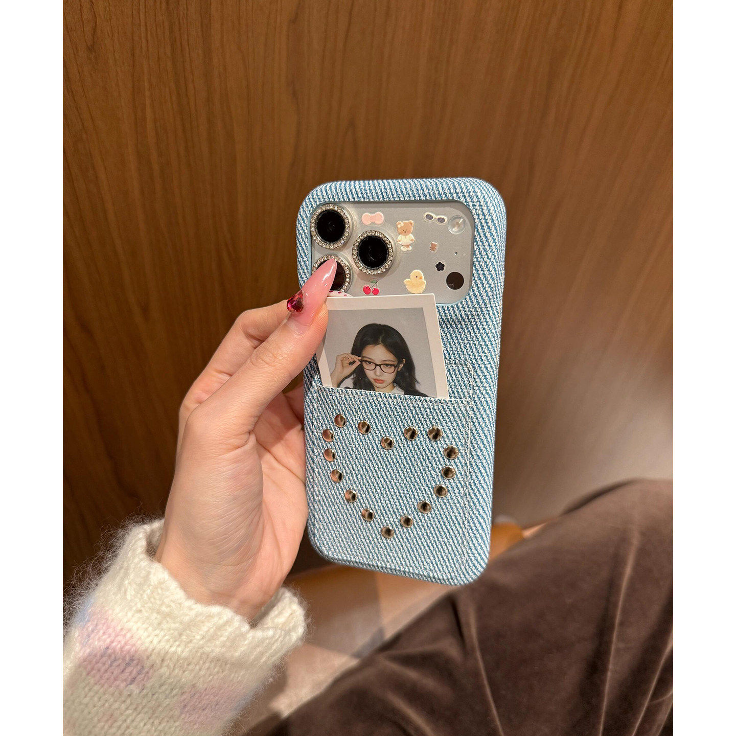 美式牛仔布卡包爱心铆钉可插卡适用苹果17promax手机壳iPhone17女新款16小众15个性17Pro防摔16pro保护套14男