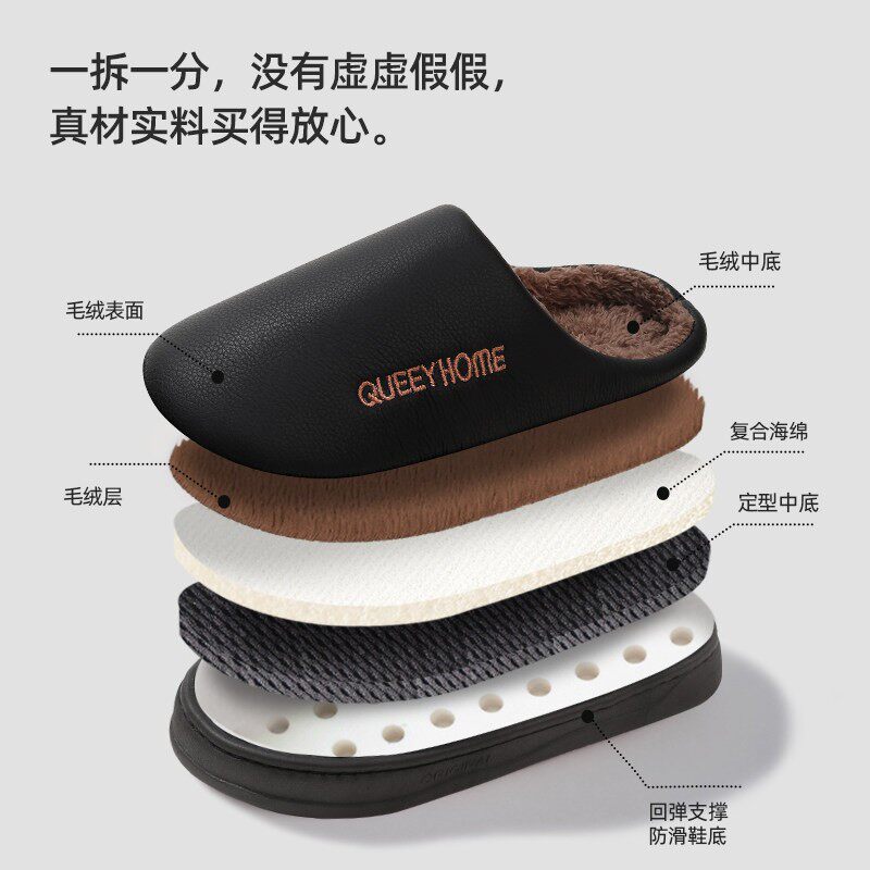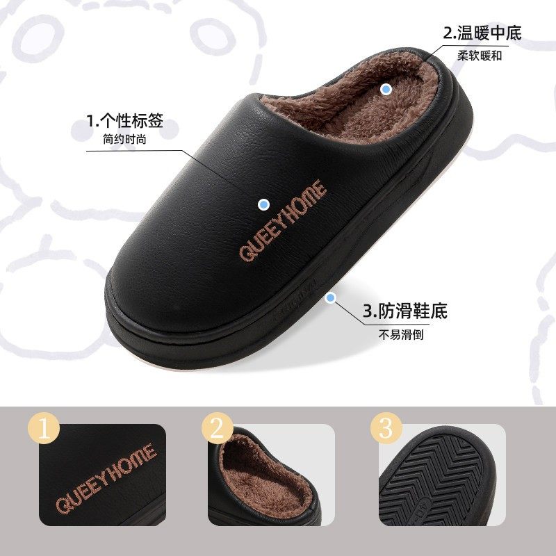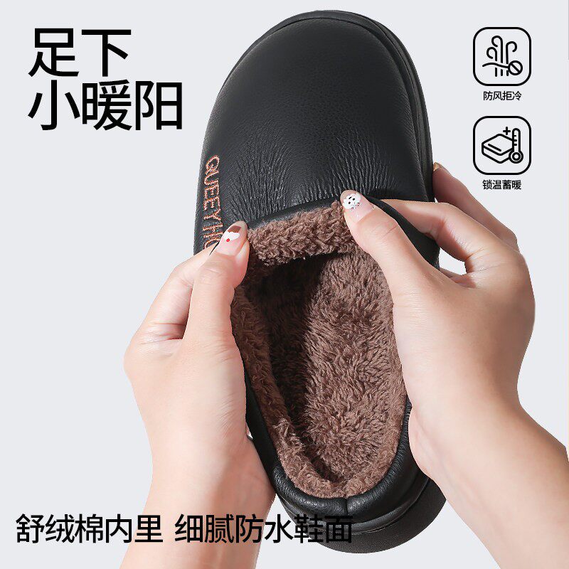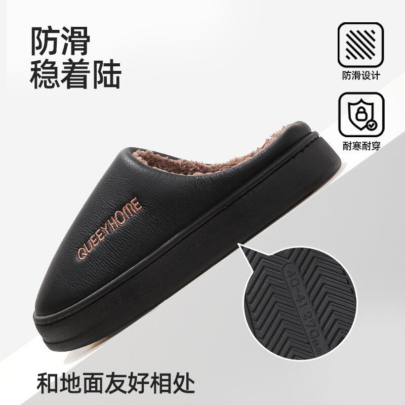 防水男士棉拖鞋男款冬季家居防滑外穿加绒棉拖冬天居家棉耐磨毛绒