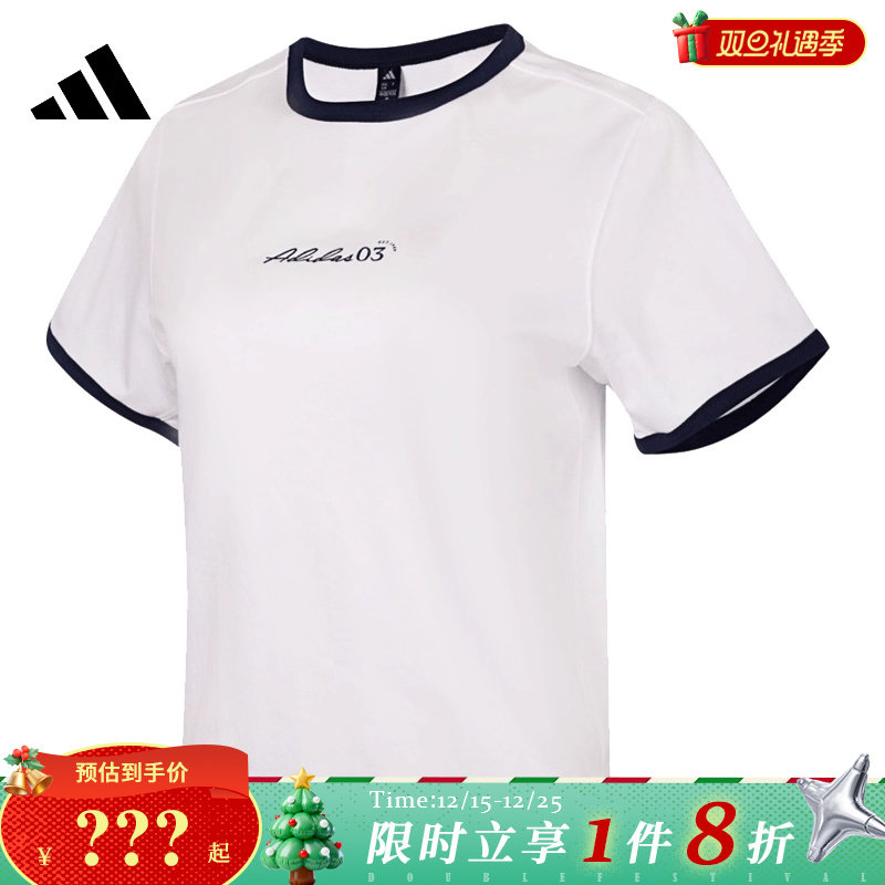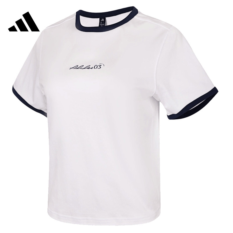 休闲宽松纯棉上衣圆领短袖T恤男女夏季新款adidas阿迪达斯轻运动