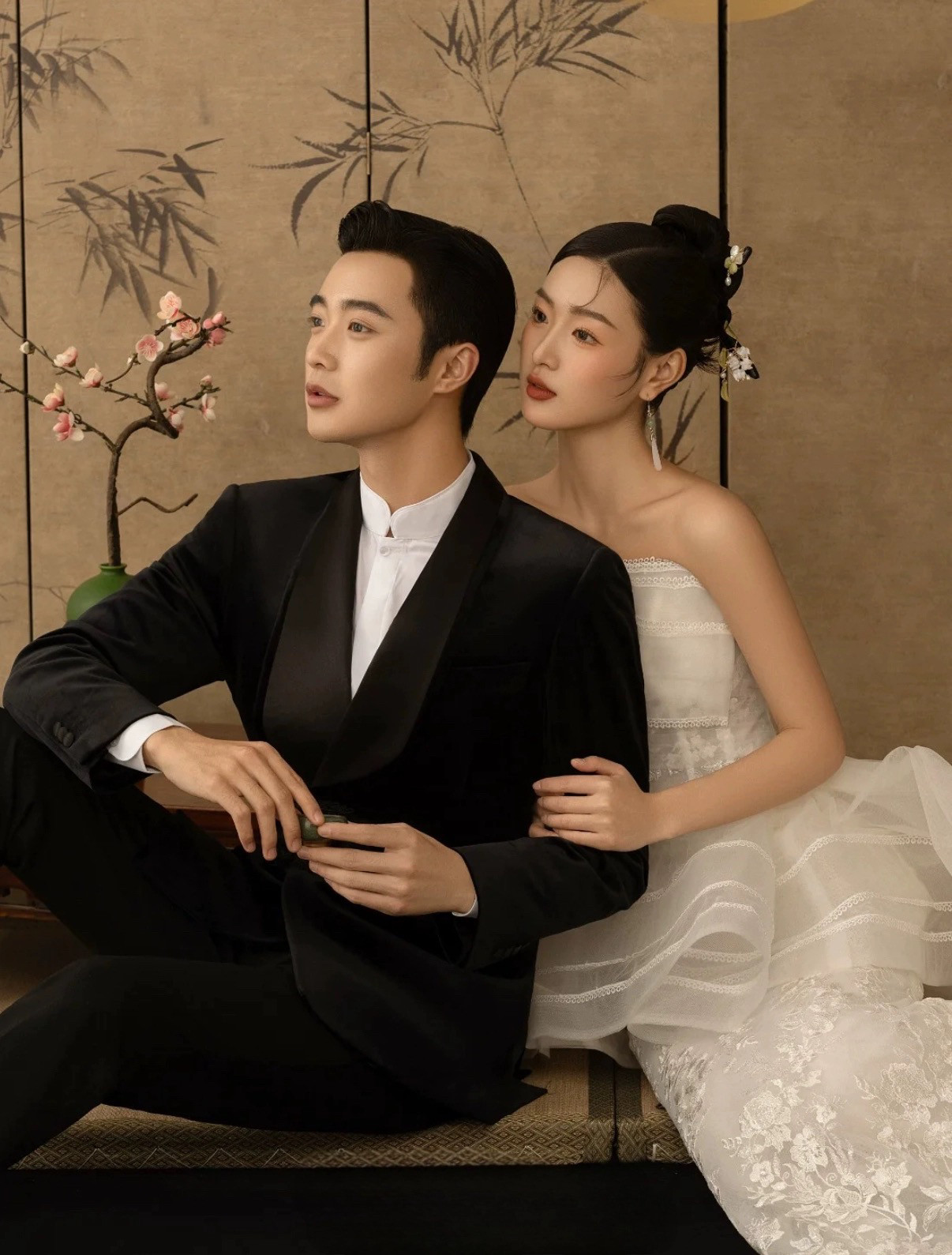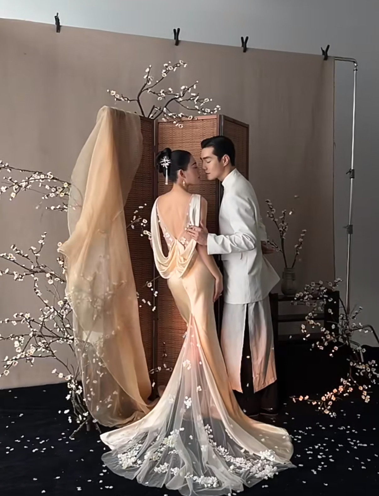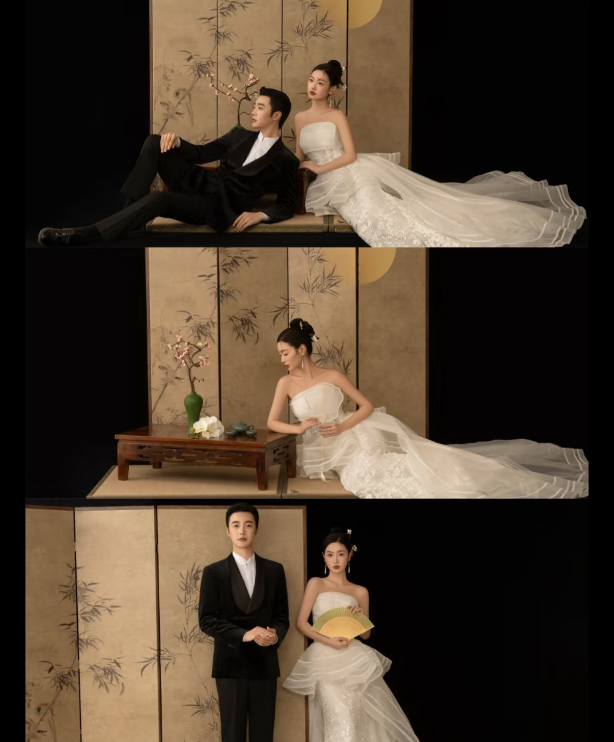 中式工笔画婚纱摄影道具古装室内拍照背景双面屏风影楼中国风屏风