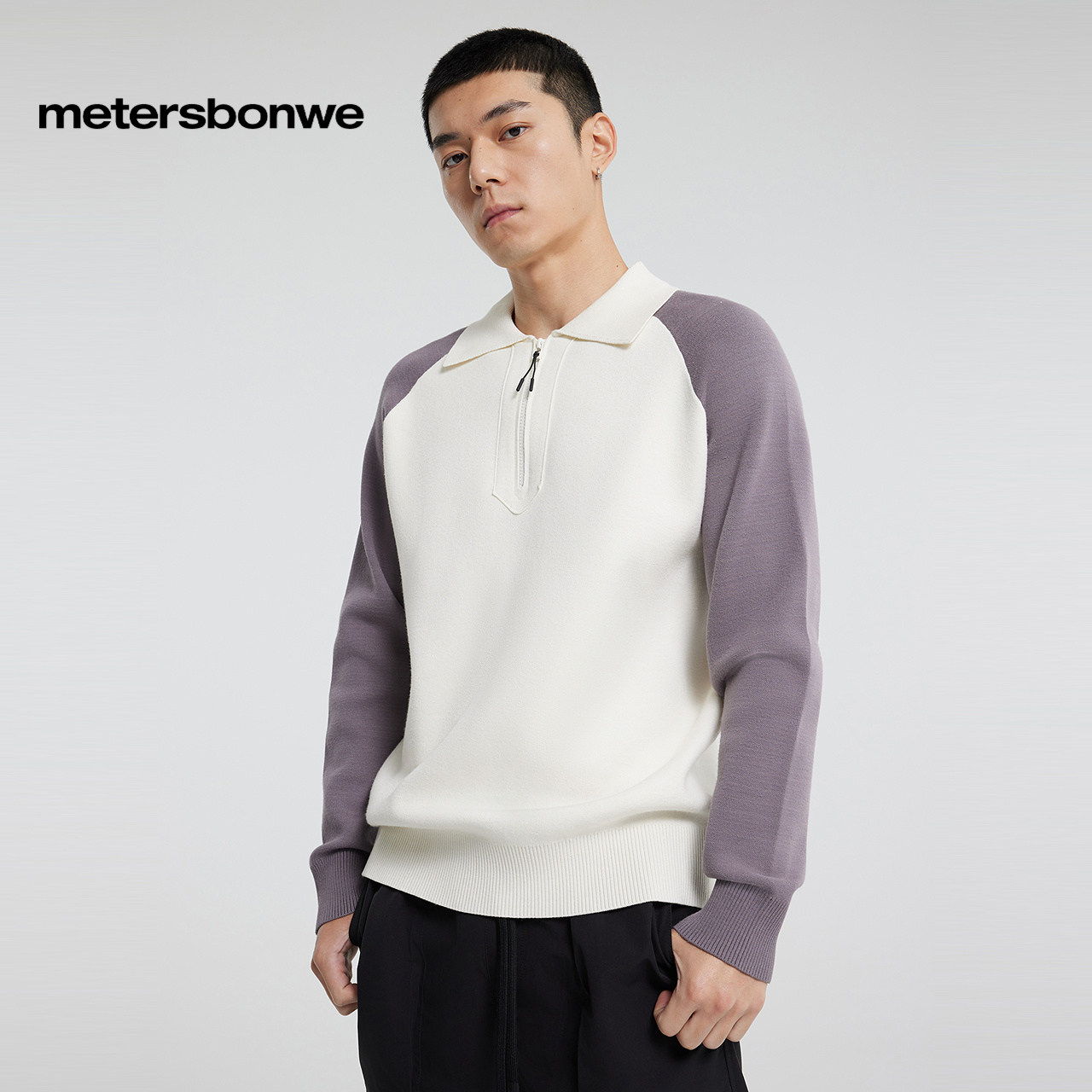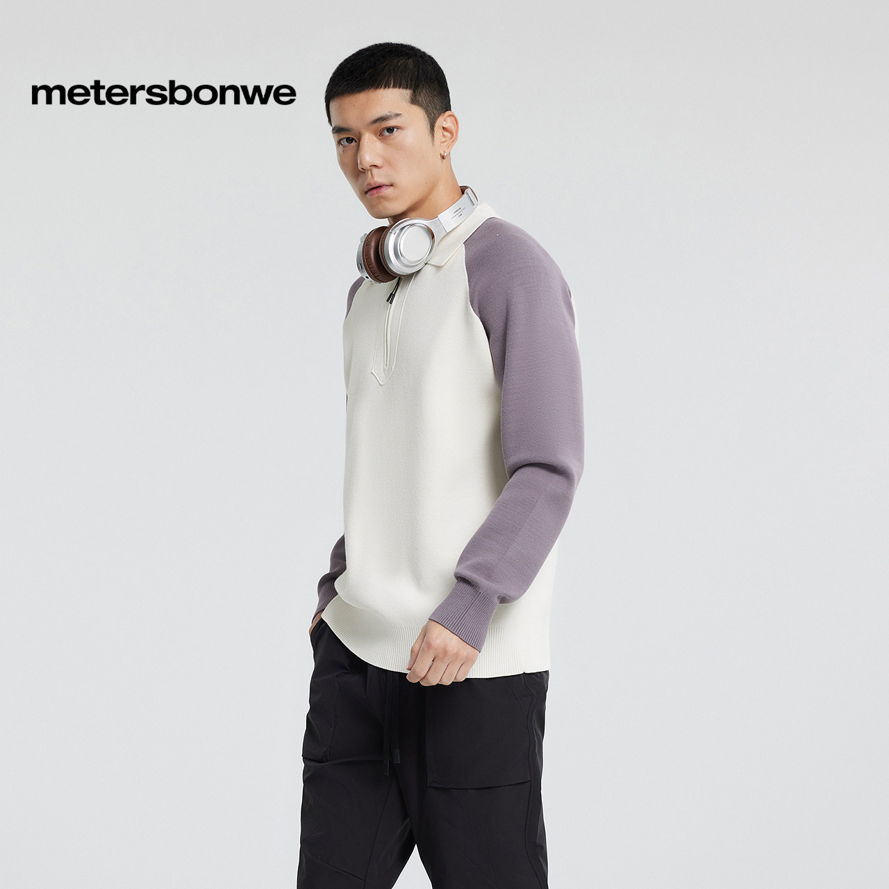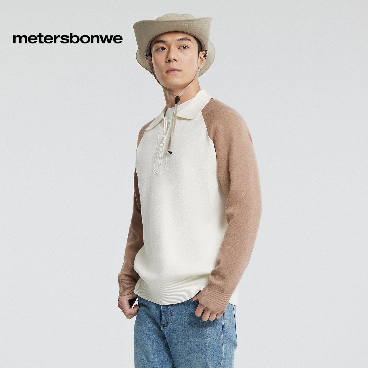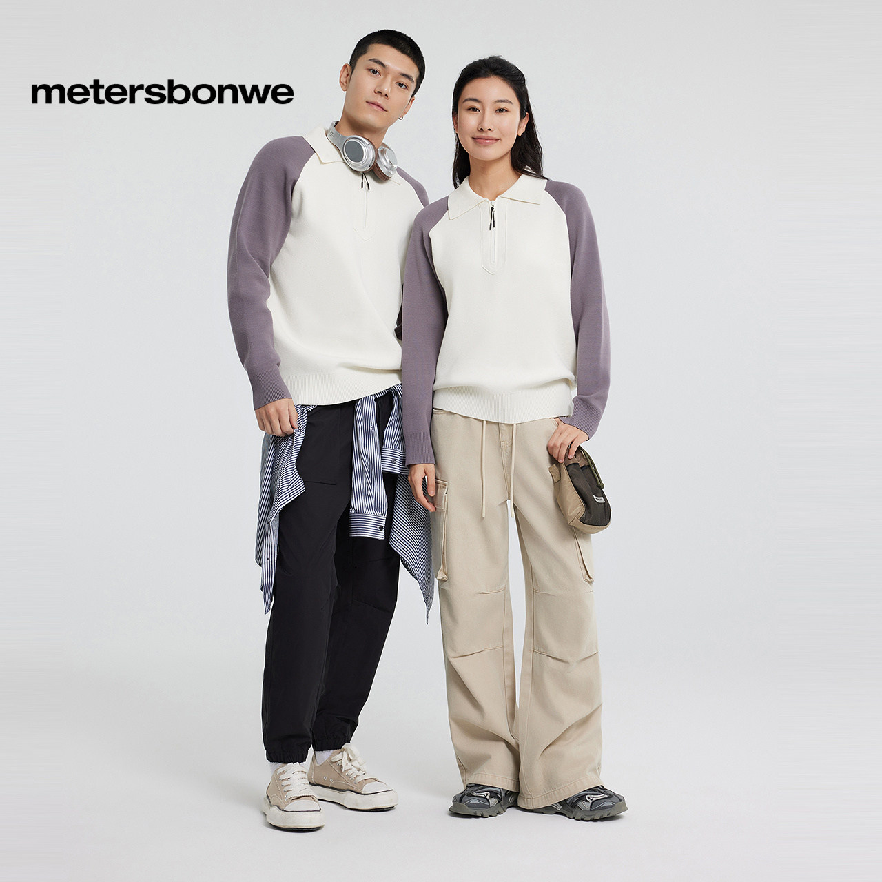 美特斯邦威毛衣男女同款25春装新品polo领半拉链撞色套头百搭毛衫