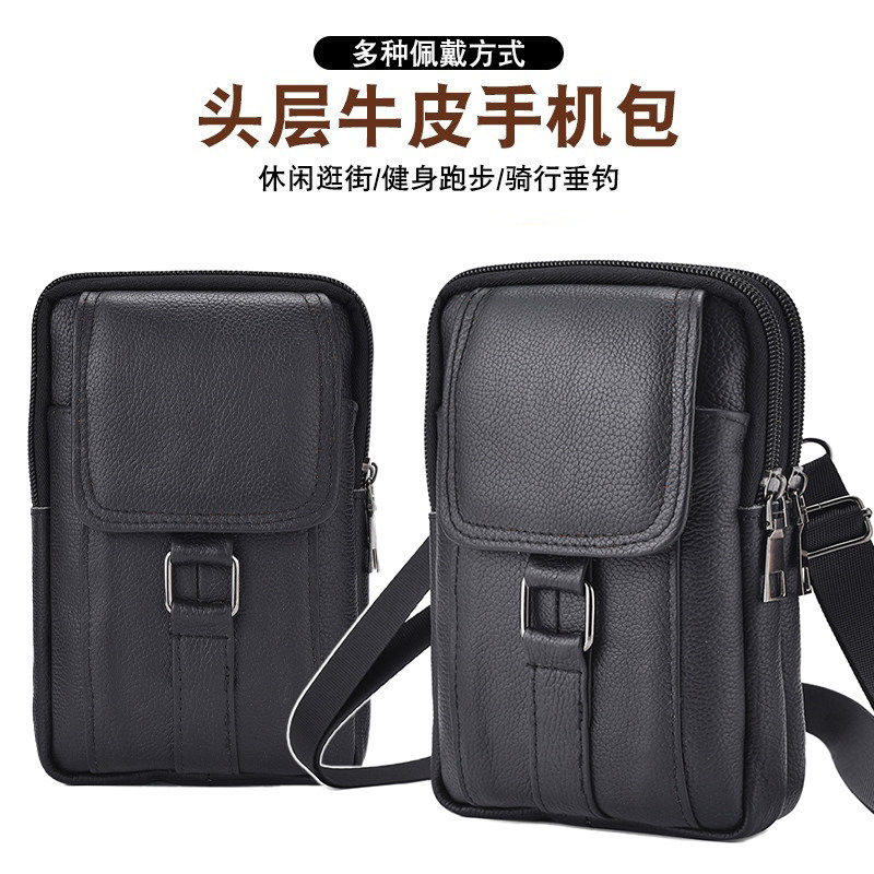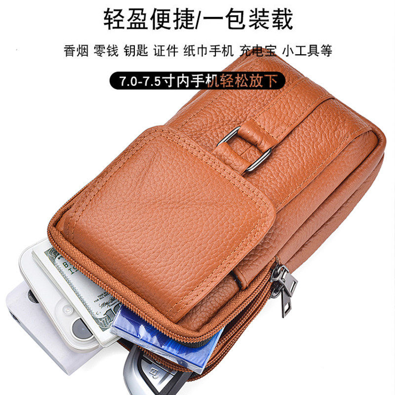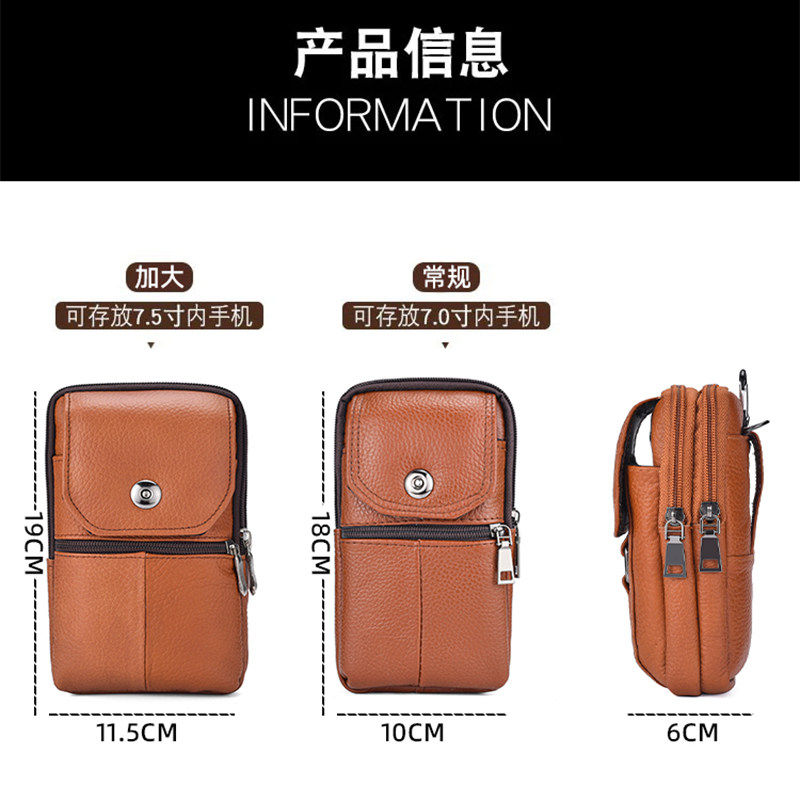 新挂腰牛皮装放手机零钱用的包男穿皮带手机袋中老年人跨腰式腰包