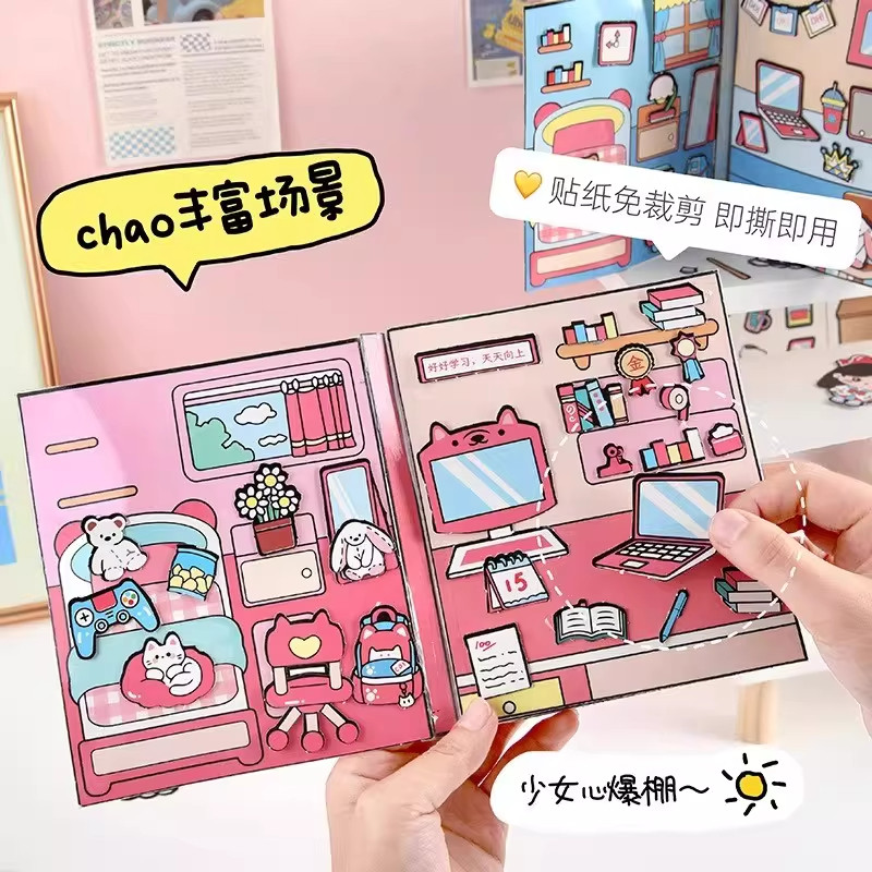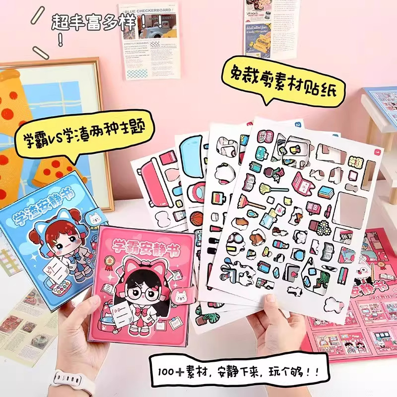 萌崽新款学霸学渣果冻贴纸安静书儿童免裁剪手工粘贴DIY女孩趣味玩具