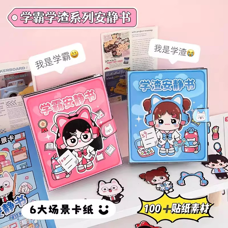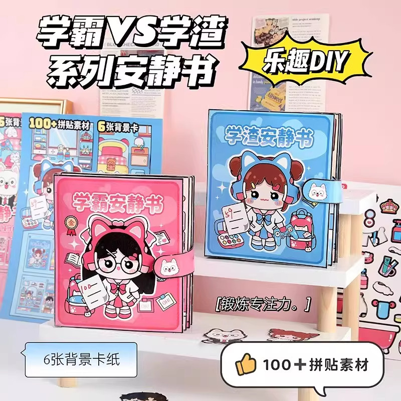 学霸学渣安静书手工diy材料包全套贴纸3到6岁儿童玩具女孩贴纸书2026新款安静书免裁剪贴纸萌崽豆豆本高级