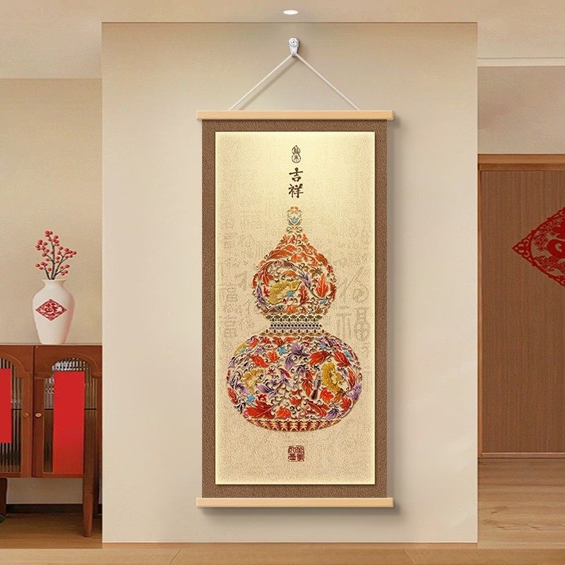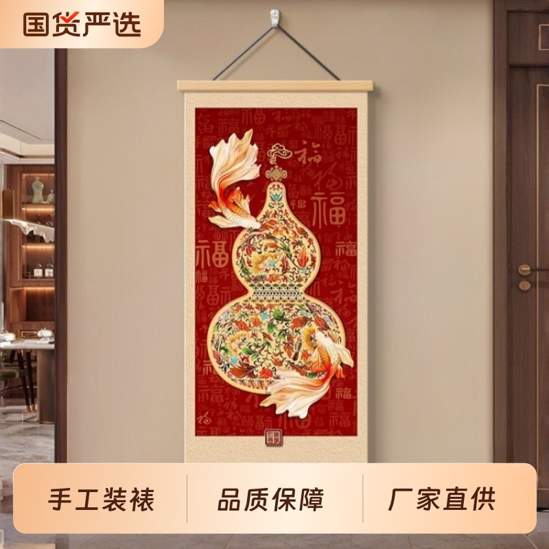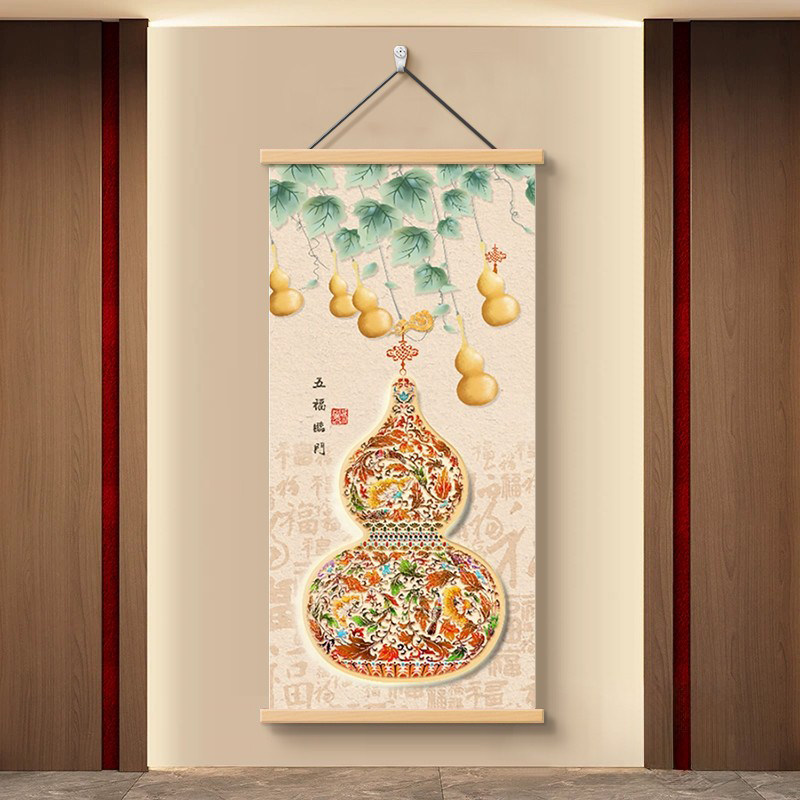 新中式葫芦入户玄关挂画福禄挂件客厅沙发背景墙装饰画百福图壁画