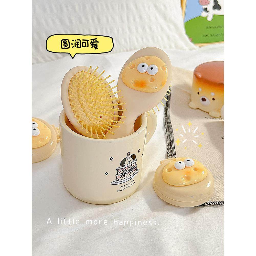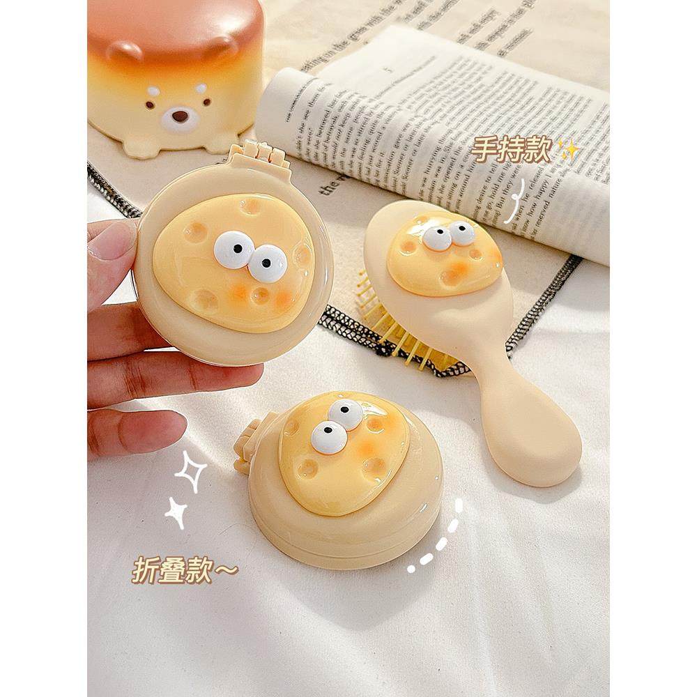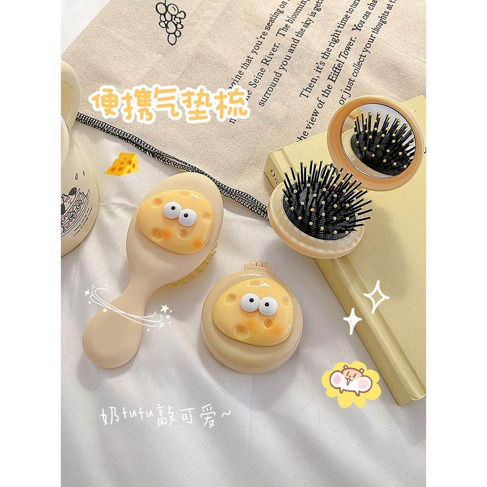 可爱奶酪气囊梳子女ins随身便携梳子镜子二合一迷你手持梳按摩梳