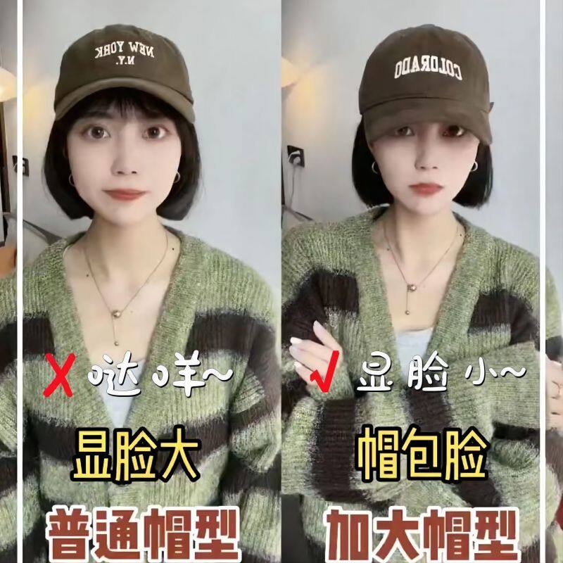 帽子女2024新款春秋大头围棒球帽遮阳显脸小鸭舌帽男加深帽檐冬日