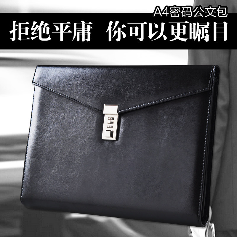 高档密码本商务A4文件包资料夹办公用品皮质密码锁会议公文包定制