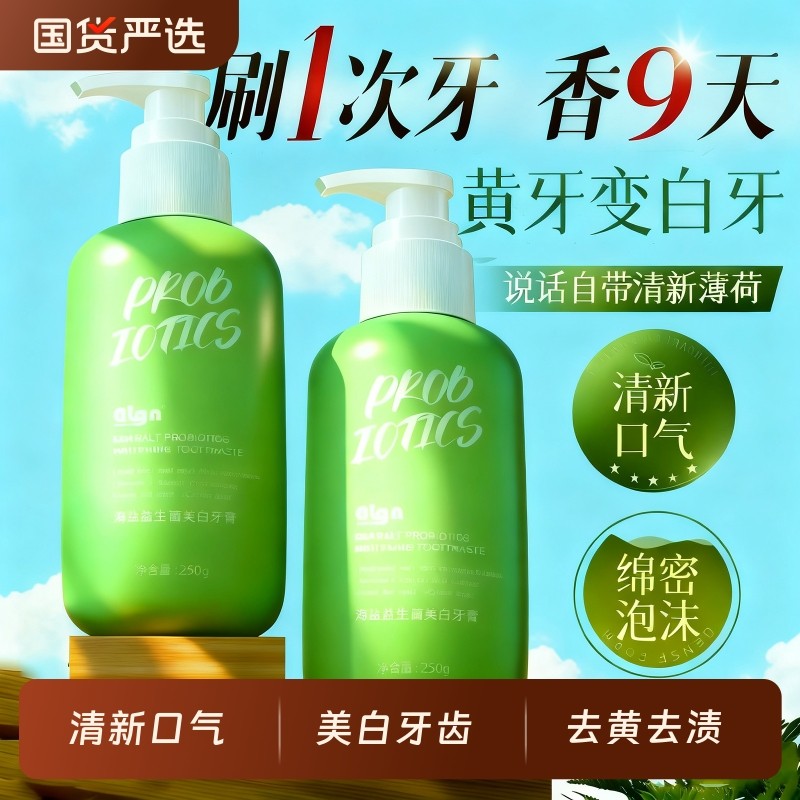 益生菌牙膏去黄清新口臭牙渍小苏打成人速效洗白官方正品男女专用