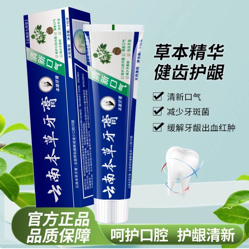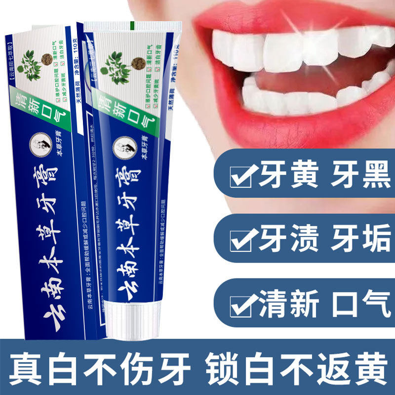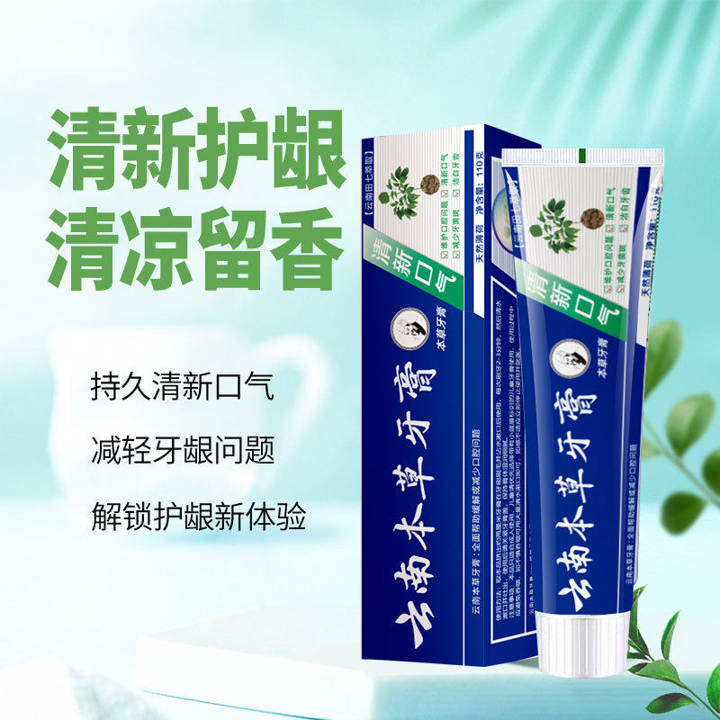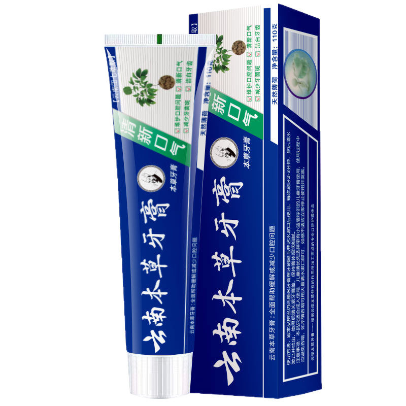 云南本草牙膏110g口气清新去牙渍批发美白中草药草本薄荷护龈牙龈