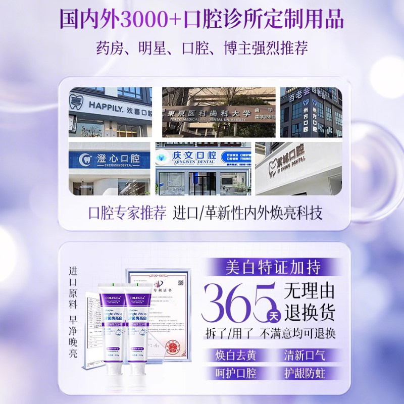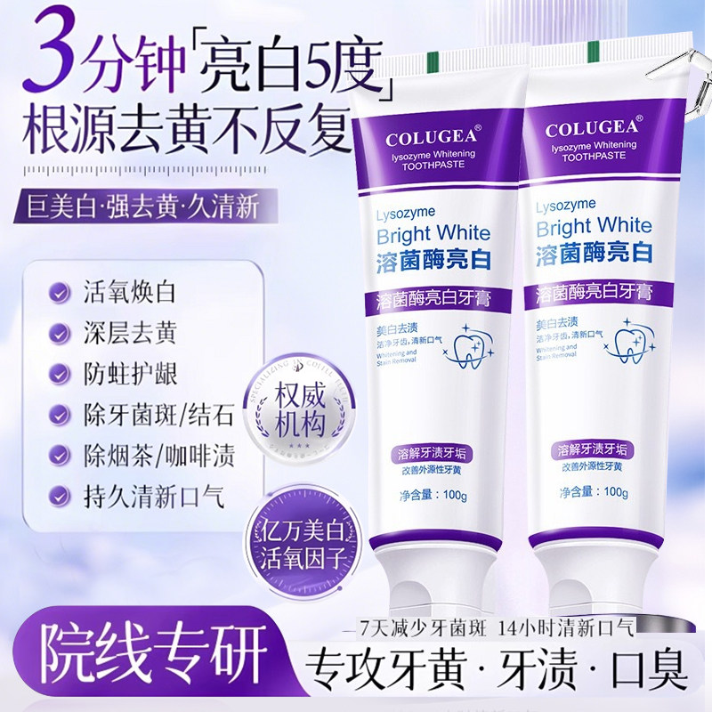 牙膏美白去黄去口臭亮白清新色修去烟渍溶菌酶去渍牙齿护龈牙龈