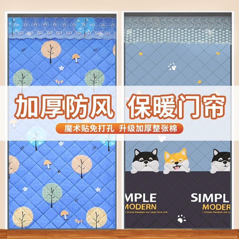 门帘加厚秋冬家用防风保暖布艺风窗帘防风帘免打孔安装磁吸帘隔音