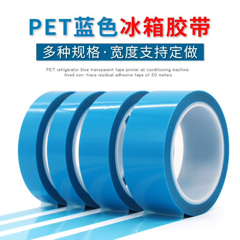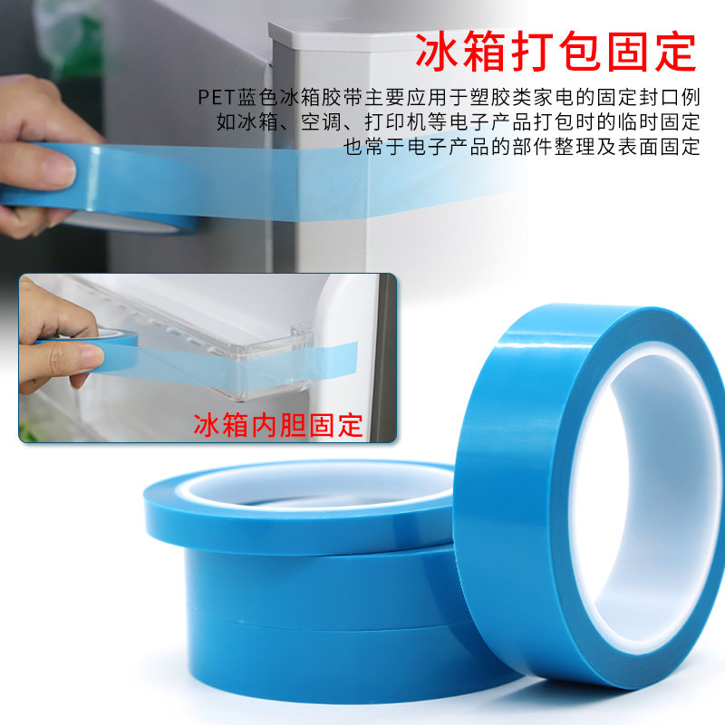 PET蓝色耐高温冰箱胶带 空调传真机打印机零件固定无痕绝缘胶纸