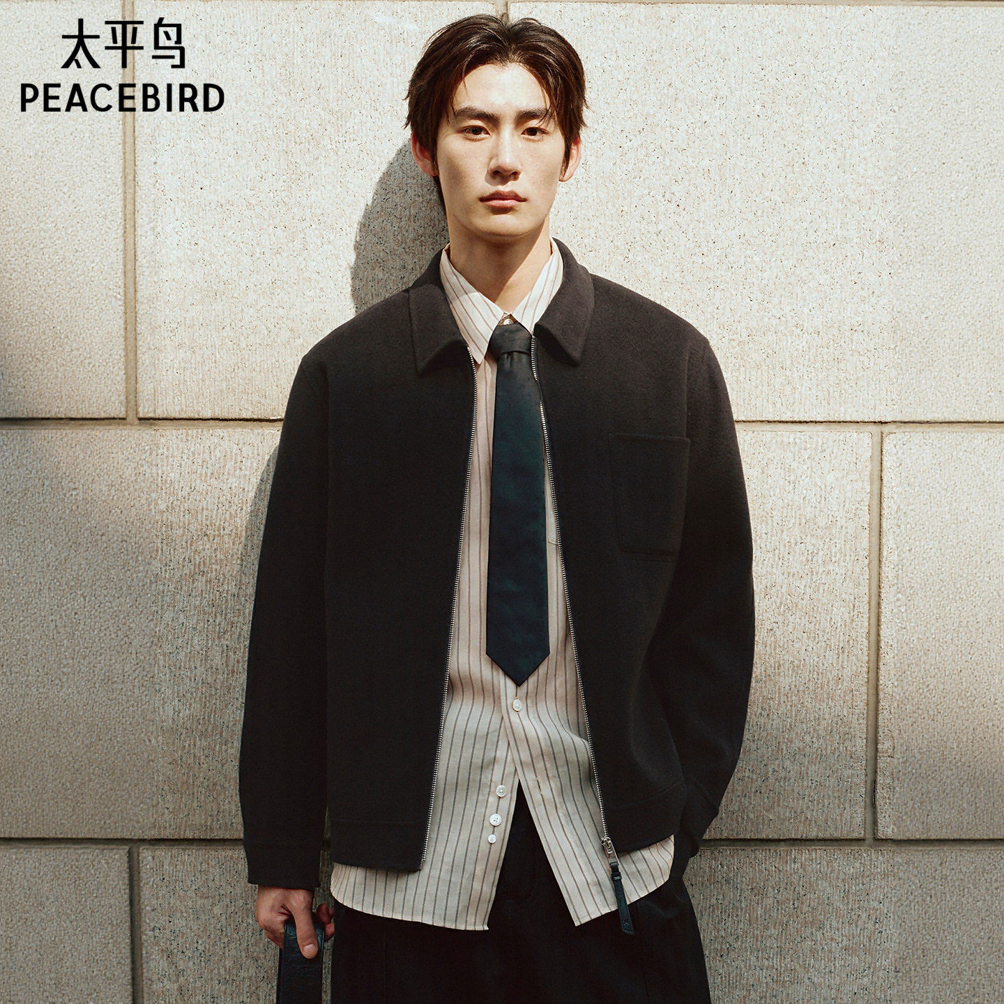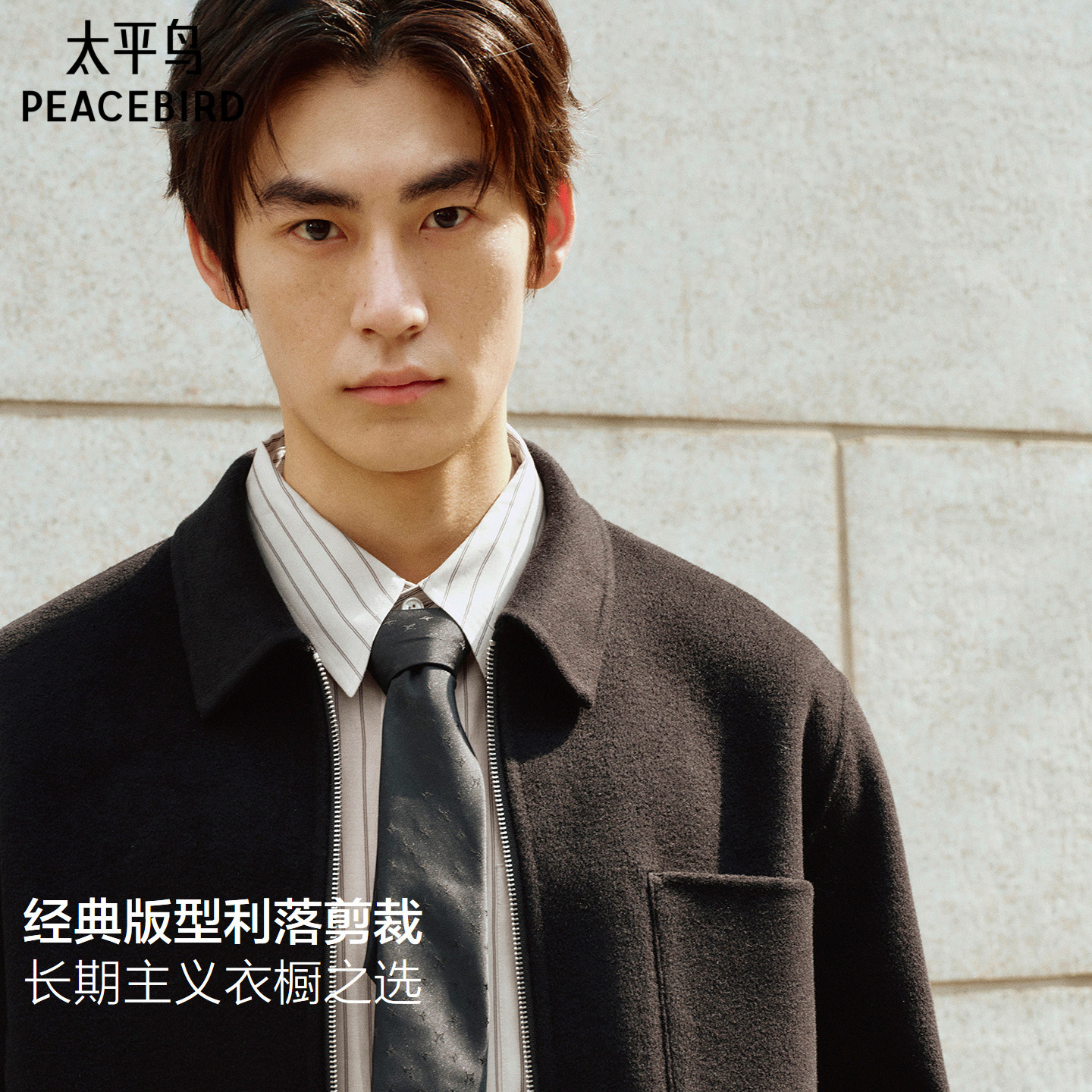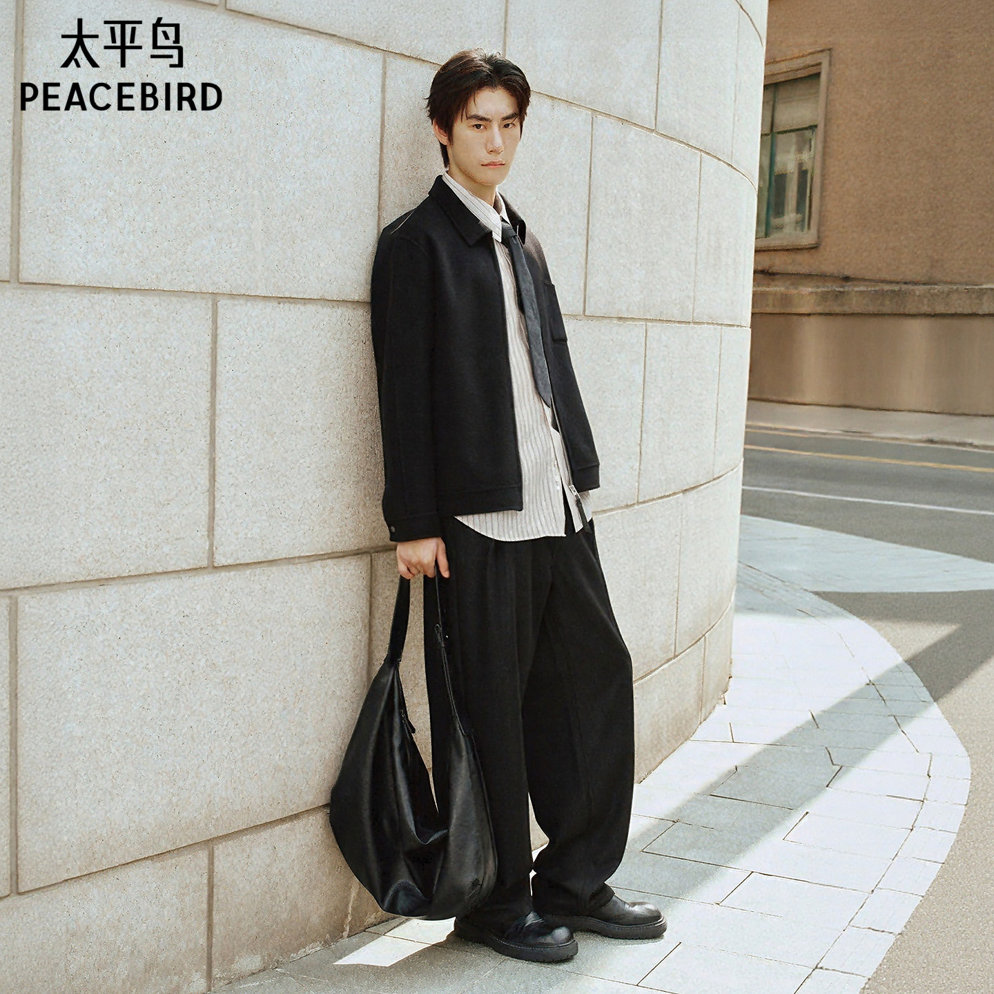 【商场同款】太平鸟男装毛呢外套25年冬季新款黑色夹克B1BCF4228@