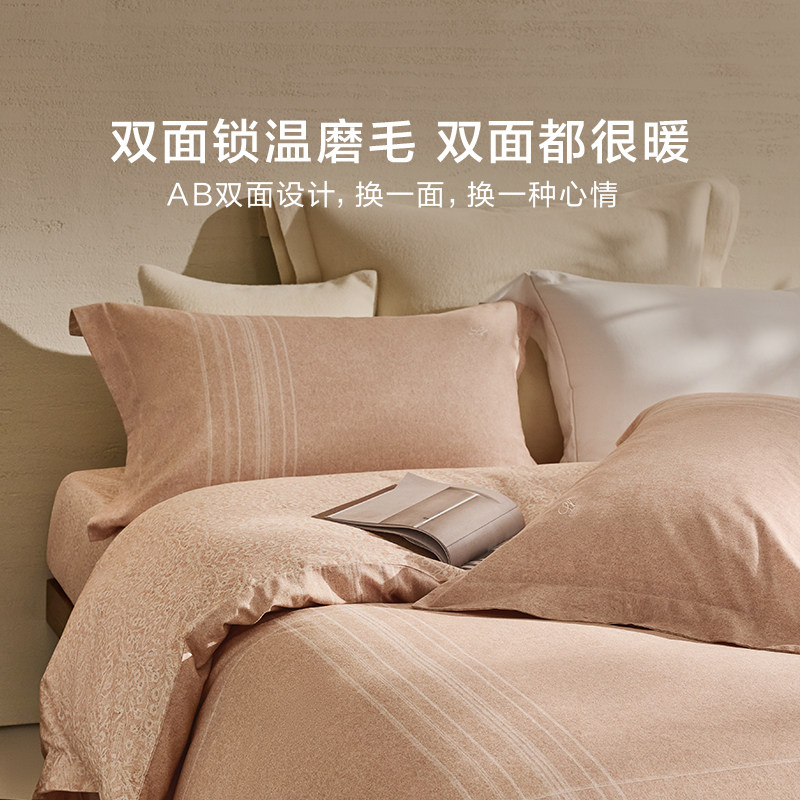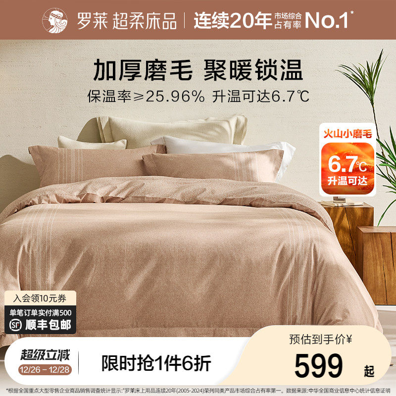 罗莱家纺秋冬2025新款磨毛三件套全棉纯棉床单被套被罩学生四件套